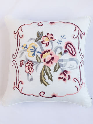 Hamptons Style Multi Embroidered Orange Blossom Cushion Cover