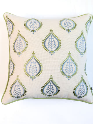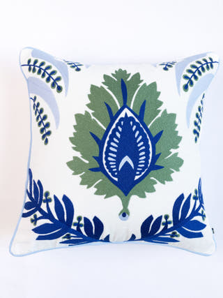 Hampton Style Multi Embroidered Green & Blue Chinar Leaf Cushion Cover
