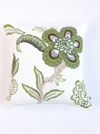 Hamptons Style Multi Embroidered Green Blossom Cushion Cover