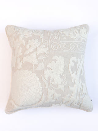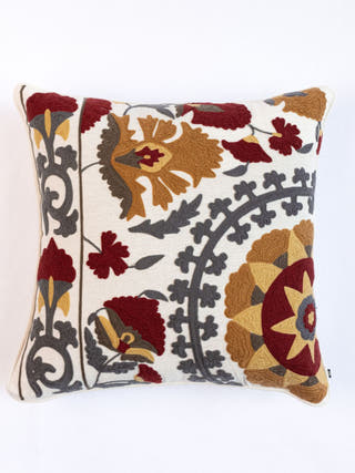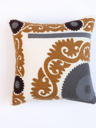 Suzani Style Crewel Embroidered Brown and Grey Tashkent Cushion Cover