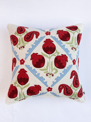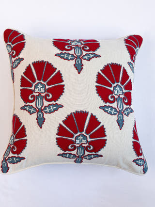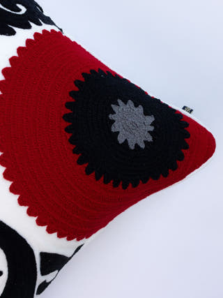 Suzani Style Crewel Embroidered Black and Red Tashkent Cushion Cover
