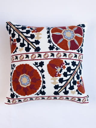 Suzani Style Crewel Embroidered Sun & Moon Cushion Cover