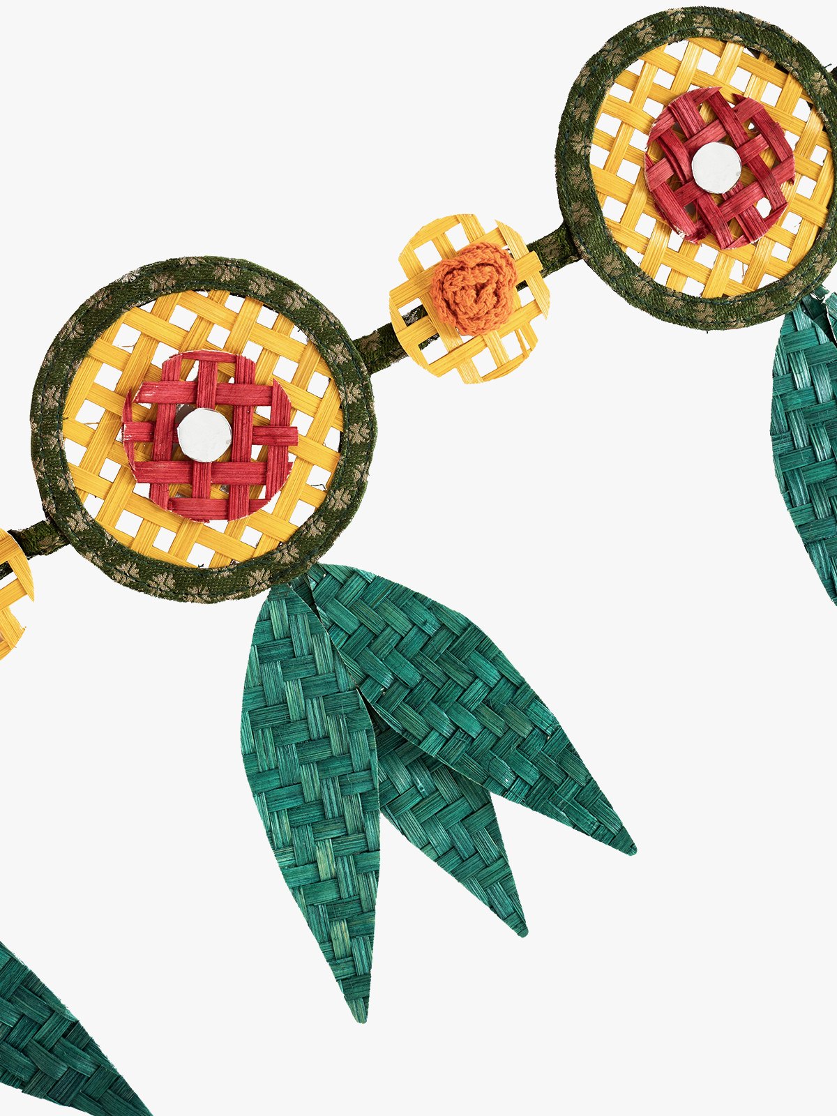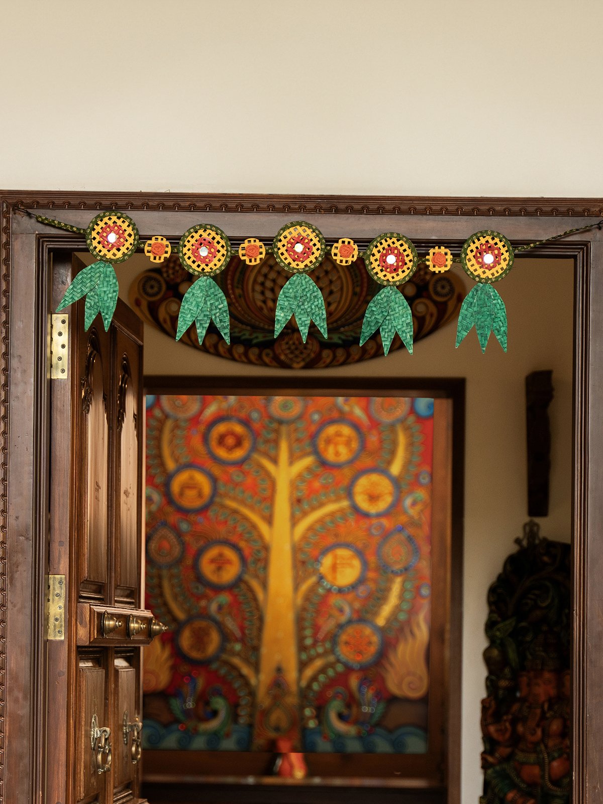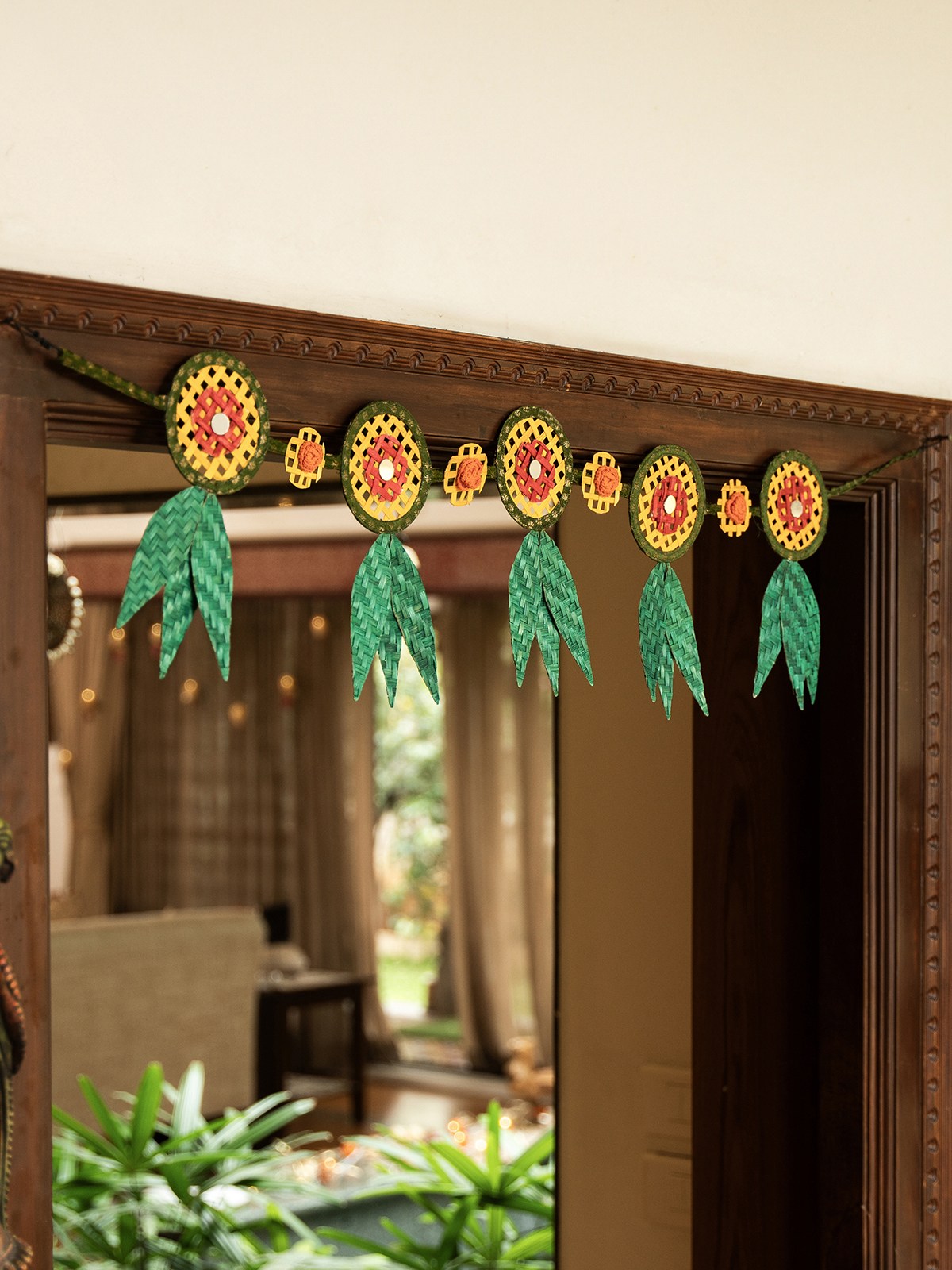 Handcrafted from natural bamboo, this eco-friendly toran adds a rustic charm to doorways and festive spaces. Lightweight, durable, and sustainable—perfect for traditional décor with a conscious touch