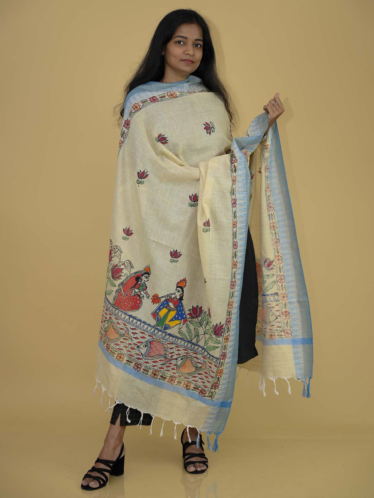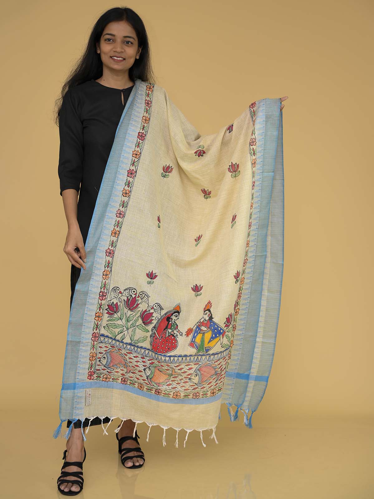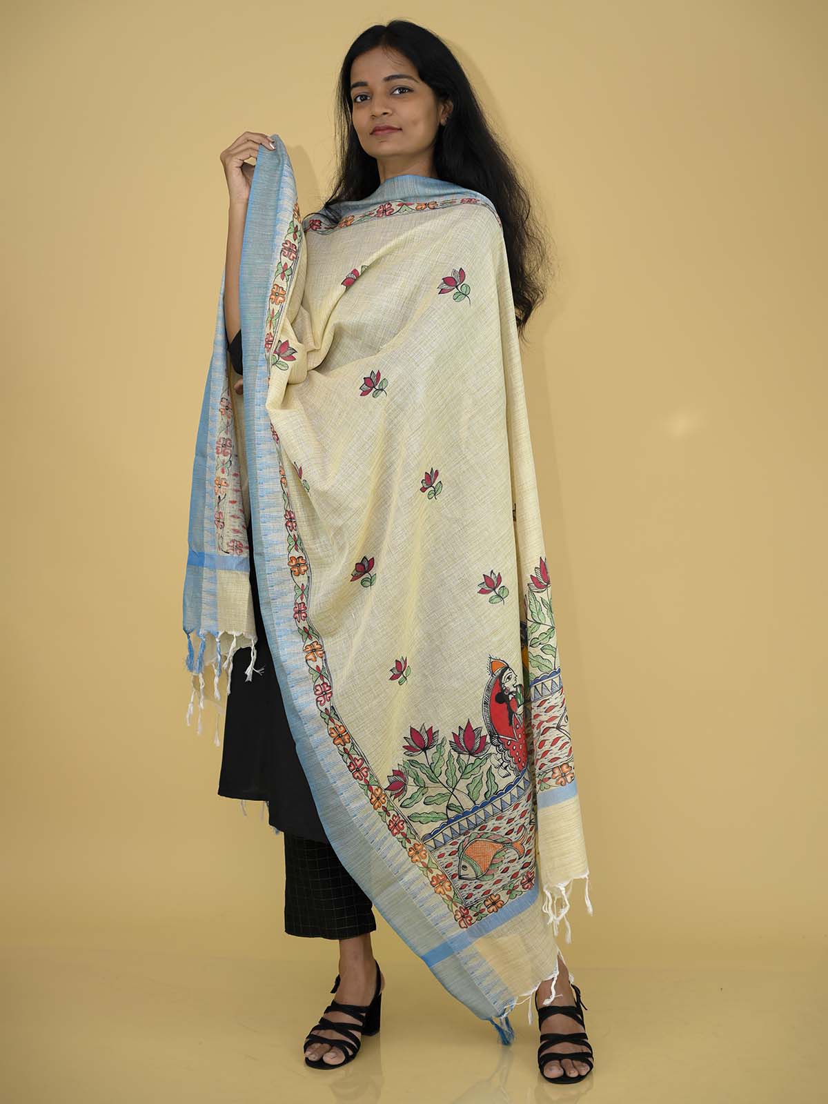 Handpainted Serene Madhubani Cotton Dupatta