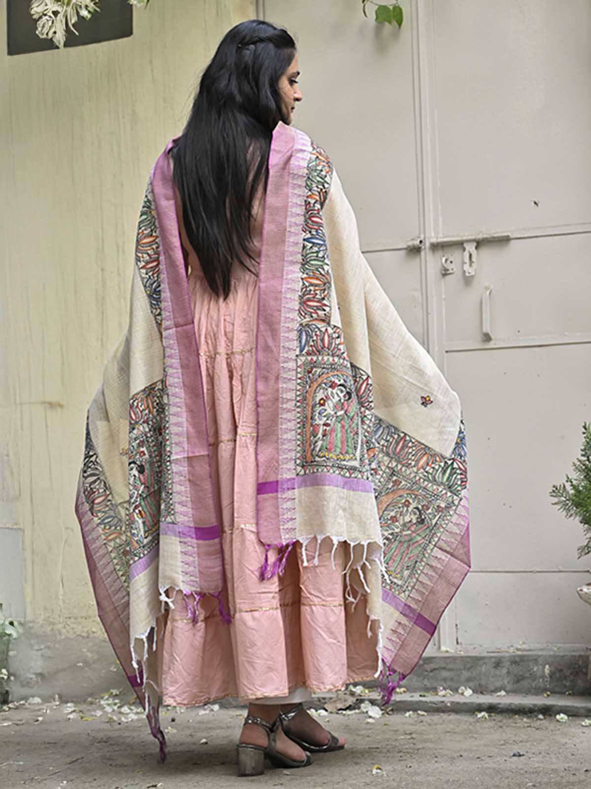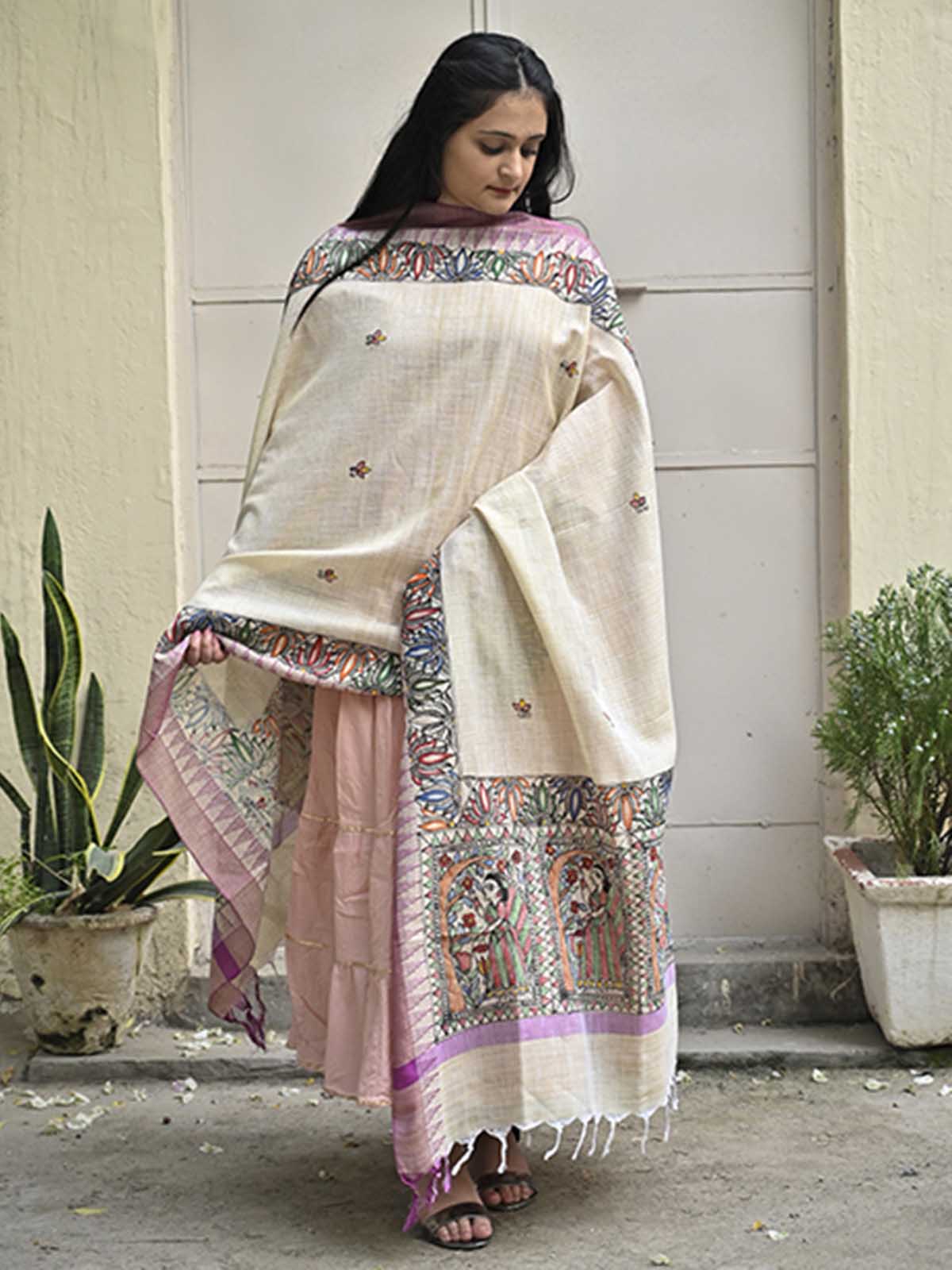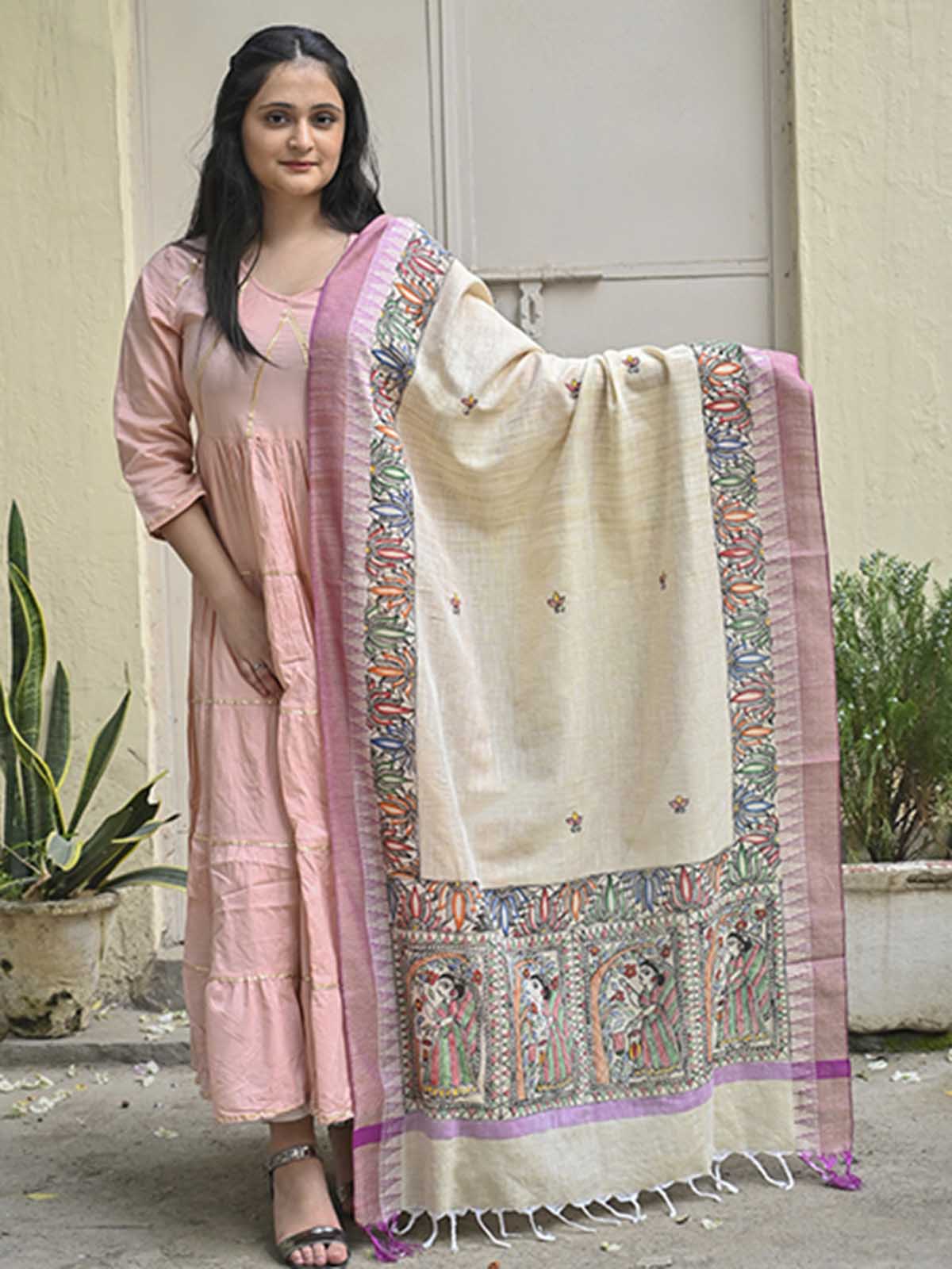 Madhubani painting is a famous art that originated in the Mithila region of Bihar (India). Madhubani hand-painted art is considered to be as old as the era in which Ramayana was set. It is said that inhabitants of the Mithila region painted their homes and streets with Madhubani art. Madhubani paintings were done to celebrate the wedding of Lord Ram and Sita. Madhubani paintings were done using natural colors and twigs of the tree. These days it is done using acrylic paints and brush. Each item is handcrafted with the hand-painting technique, and might carry variations of color, patterns and other delicate inefficiencies. Handloom fabric may have uneven texture.