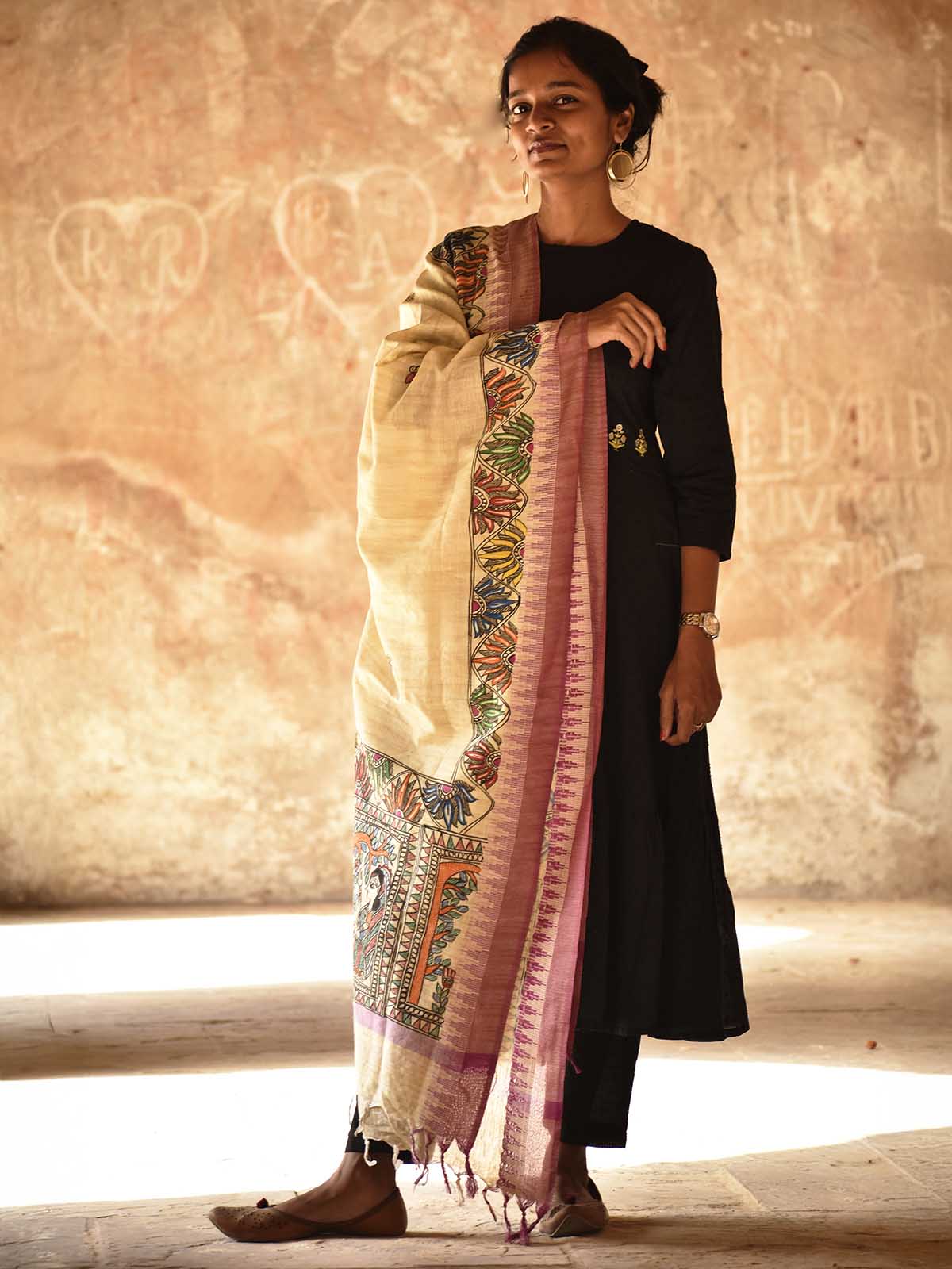 Madhubani painting is a famous art that originated in the Mithila region of Bihar (India). Madhubani hand-painted art is considered to be as old as the era in which Ramayana was set. It is said that inhabitants of the Mithila region painted their homes and streets with Madhubani art. Madhubani paintings were done to celebrate the wedding of Lord Ram and Sita. Madhubani paintings were done using natural colors and twigs of the tree. These days it is done using acrylic paints and brush. Each item is handcrafted with the hand-painting technique, and might carry variations of color, patterns and other delicate inefficiencies. Handloom fabric may have uneven texture.