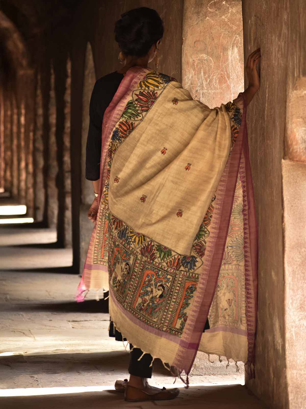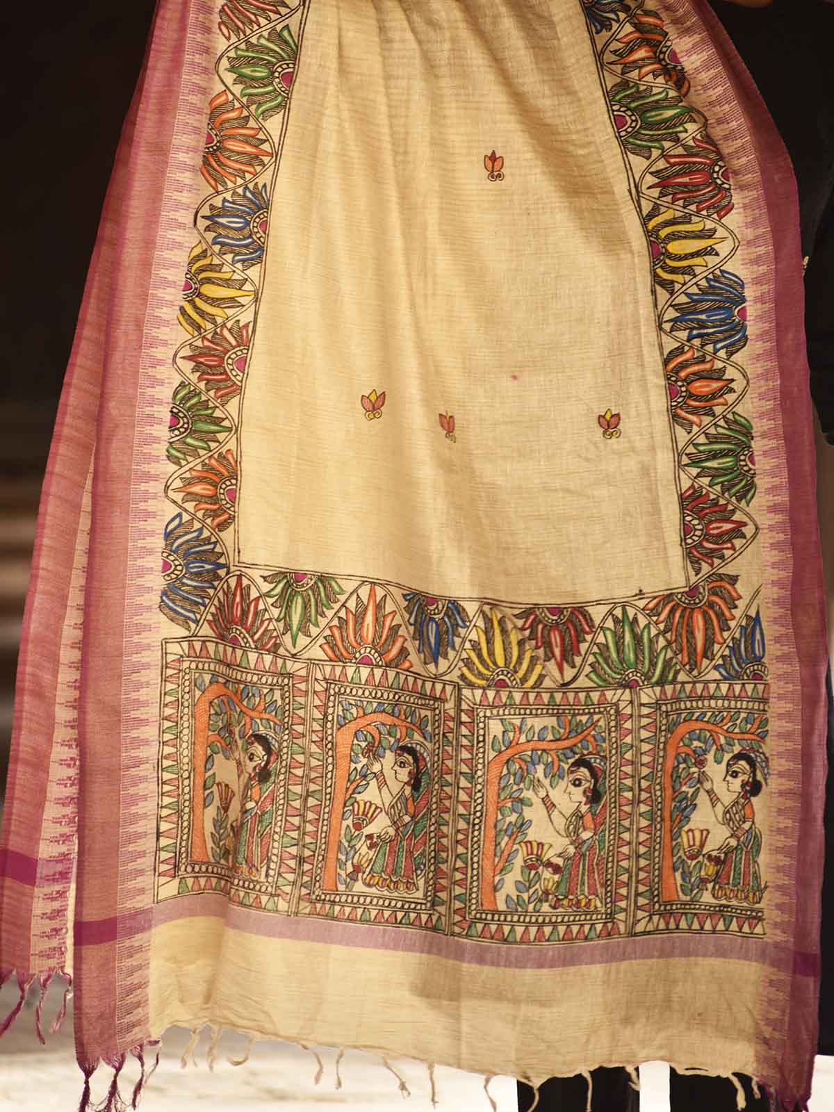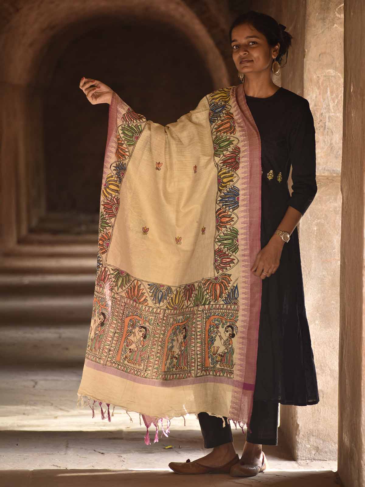 Madhubani Hand Painted Cotton Multicolor Dupatta