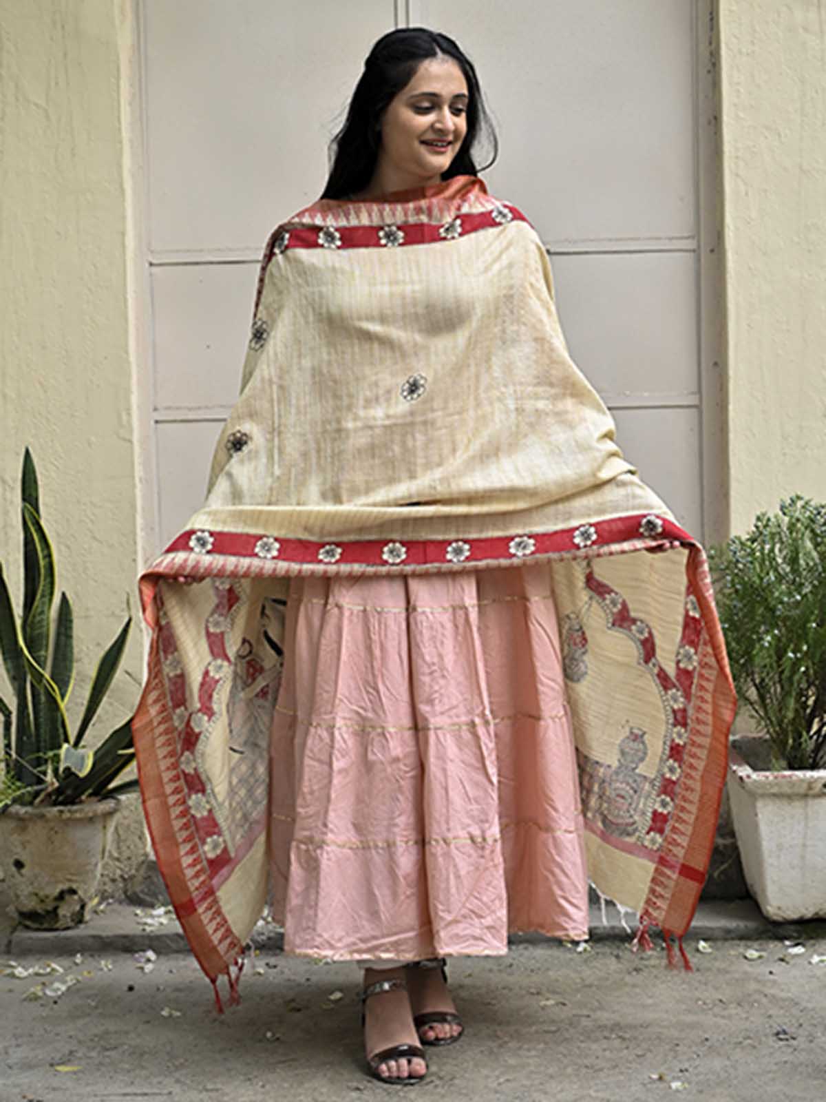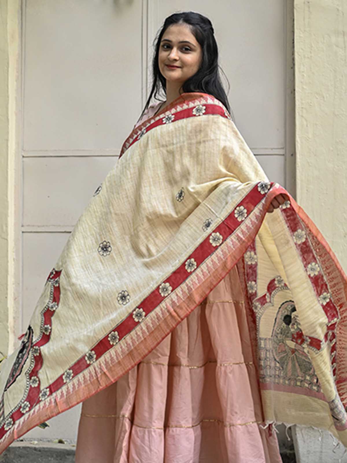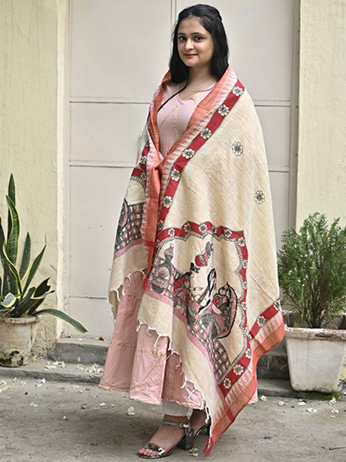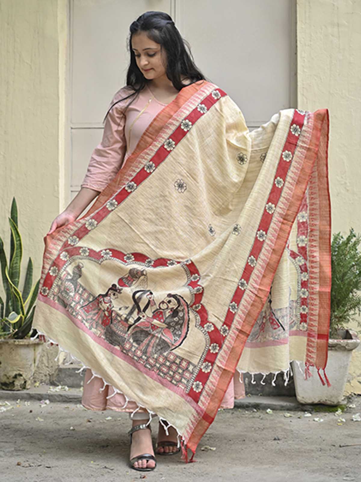 Madhubani Hand Painted Makhan Chor Cotton Dupatta