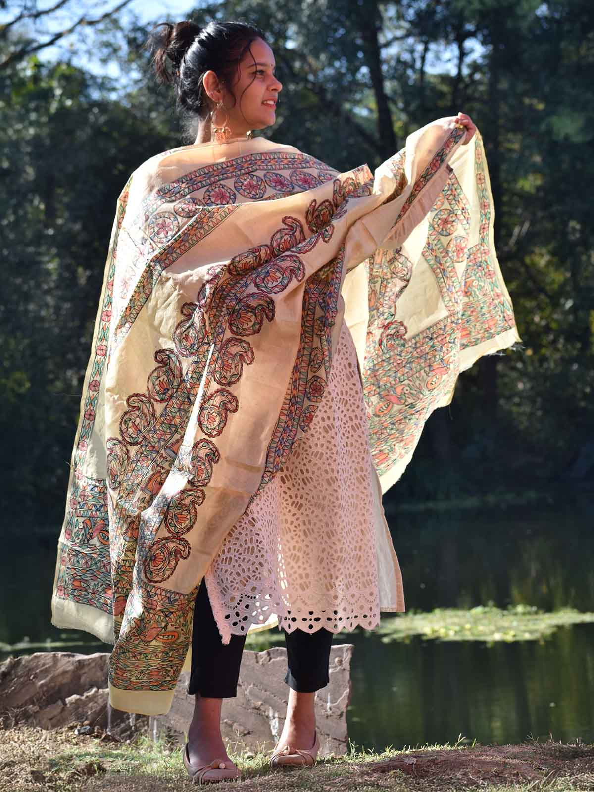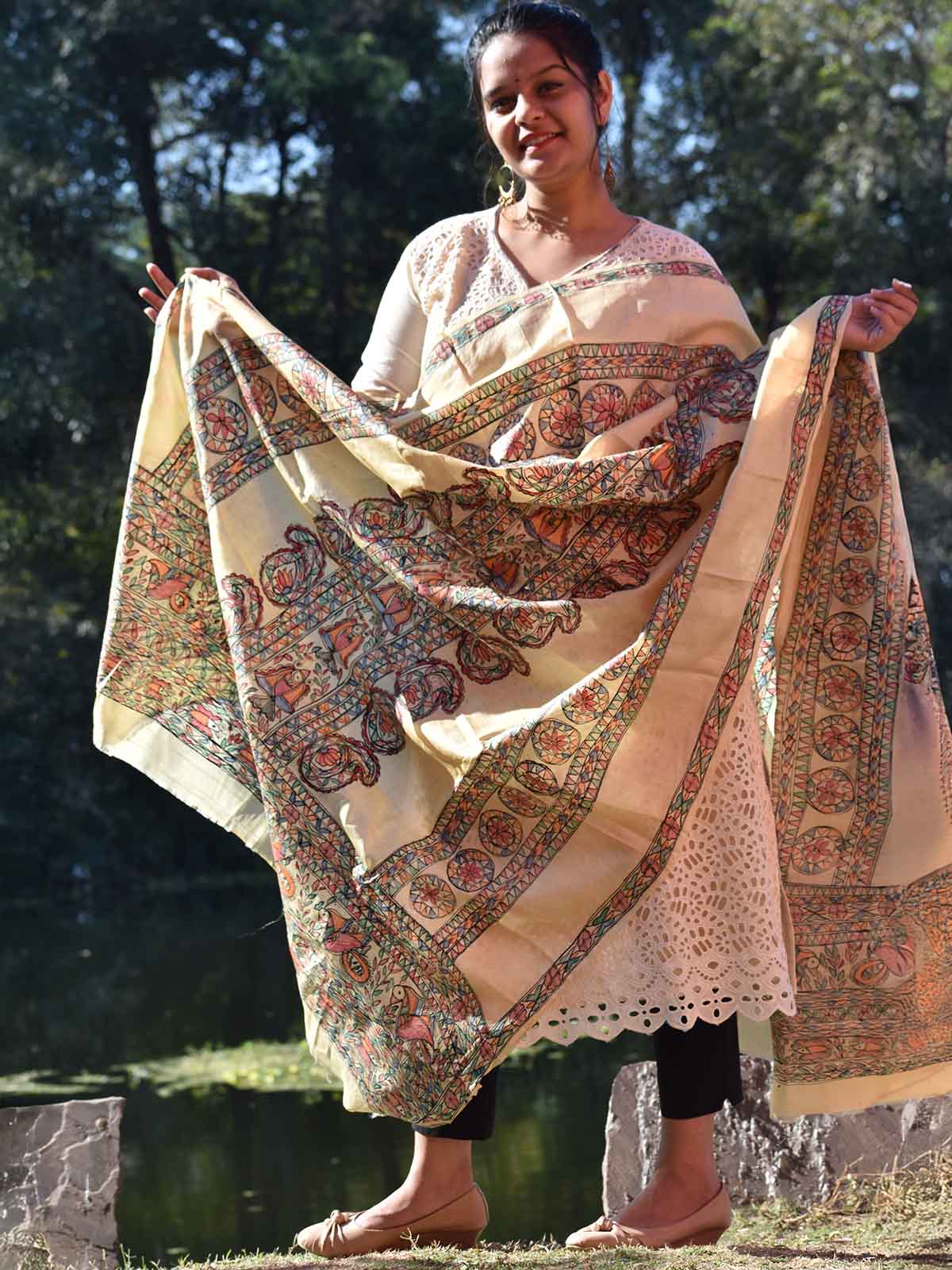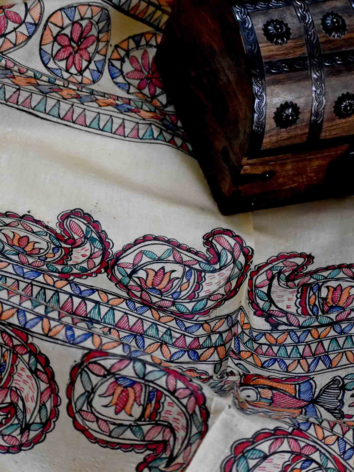 Madhubani Hand Painted Silk Dupatta