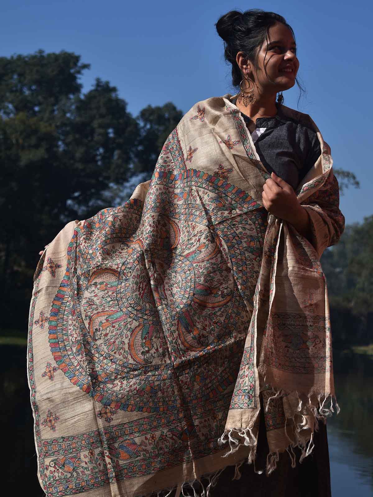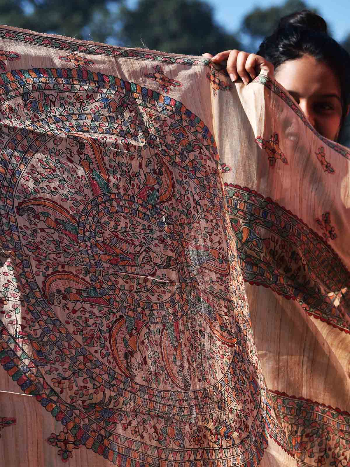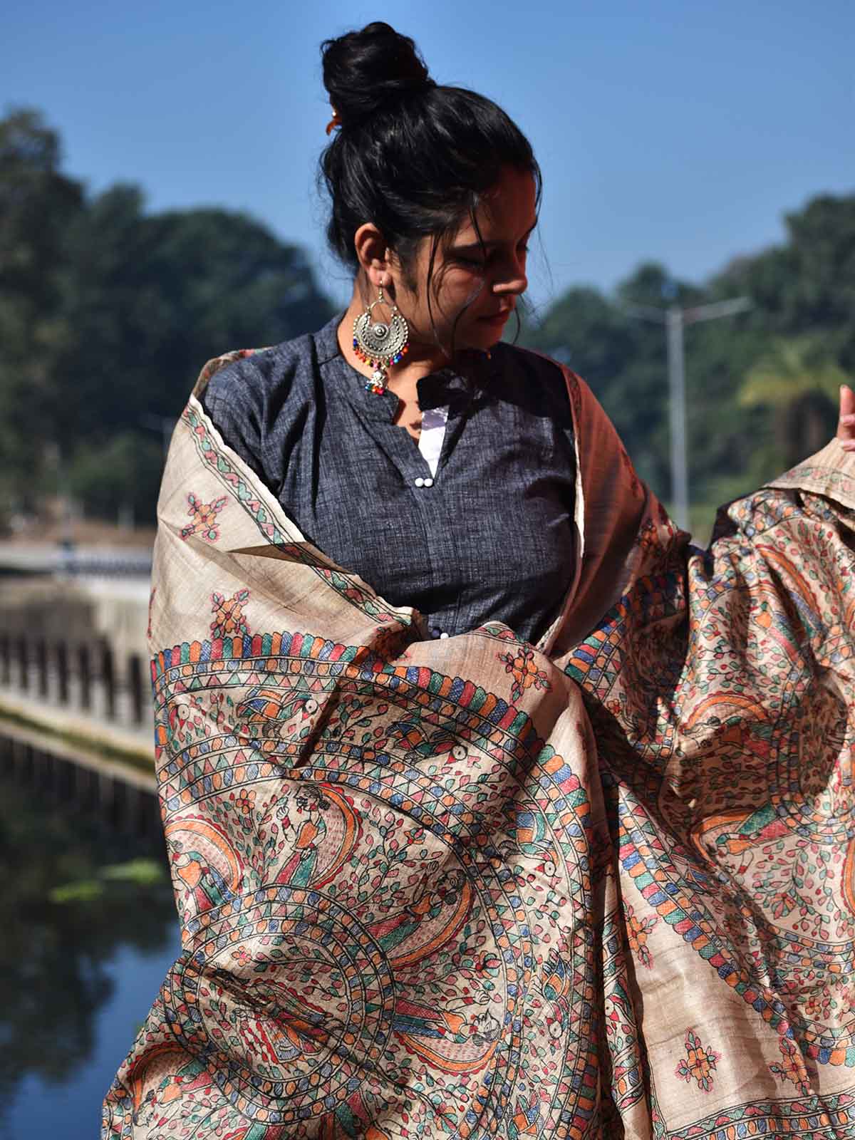 Madhubani painting is a famous art that originated in the Mithila region of Bihar (India). Madhubani hand-painted art is considered to be as old as the era in which Ramayana was set. It is said that inhabitants of the Mithila region painted their homes and streets with Madhubani art. Madhubani paintings were done to celebrate the wedding of Lord Ram and Sita. Madhubani paintings were done using natural colors and twigs of the tree. These days it is done using acrylic paints and brush. Each item is handcrafted with the hand-painting technique, and might carry variations of color, patterns and other delicate inefficiencies. Handloom fabric may have uneven texture.