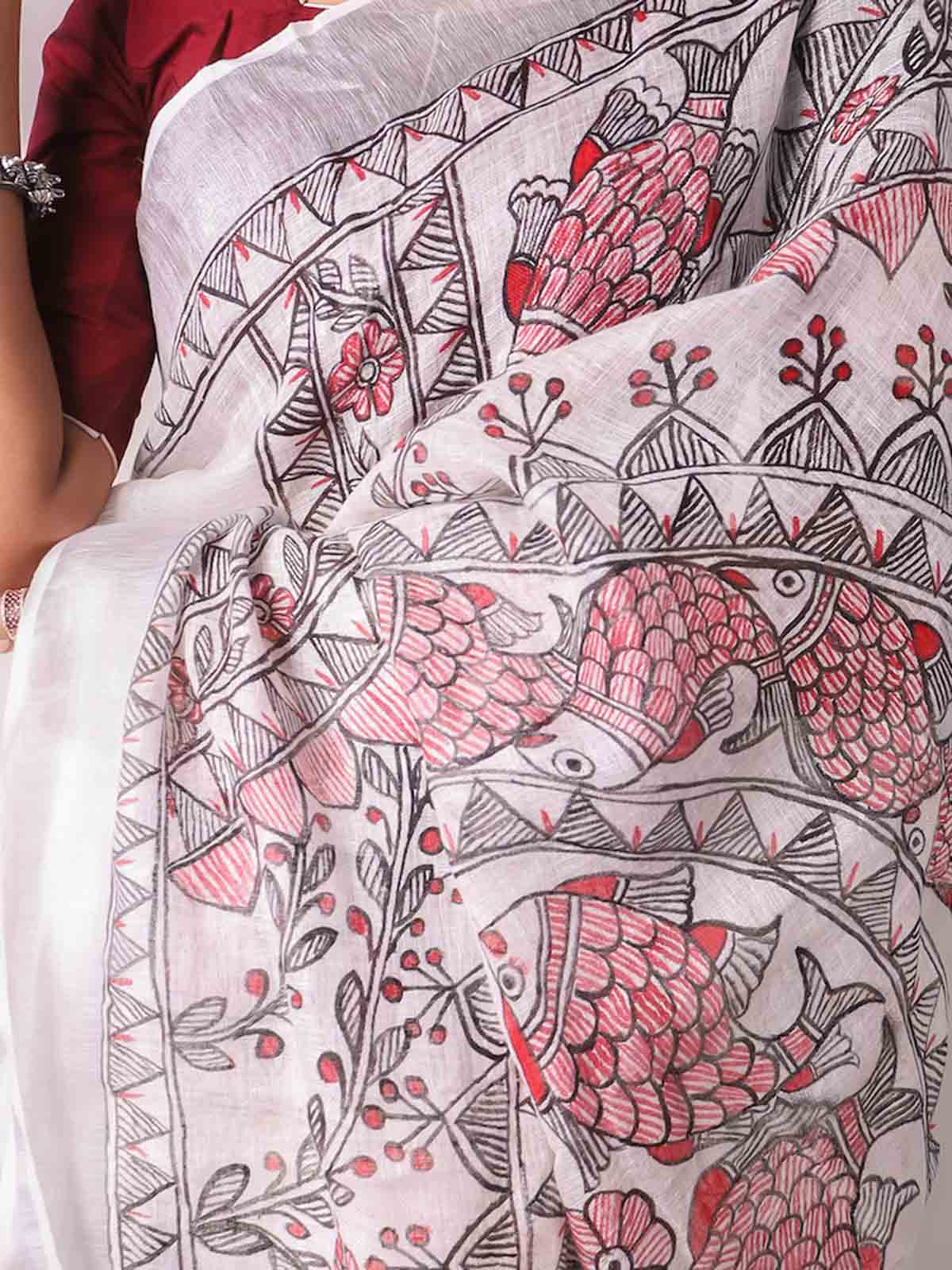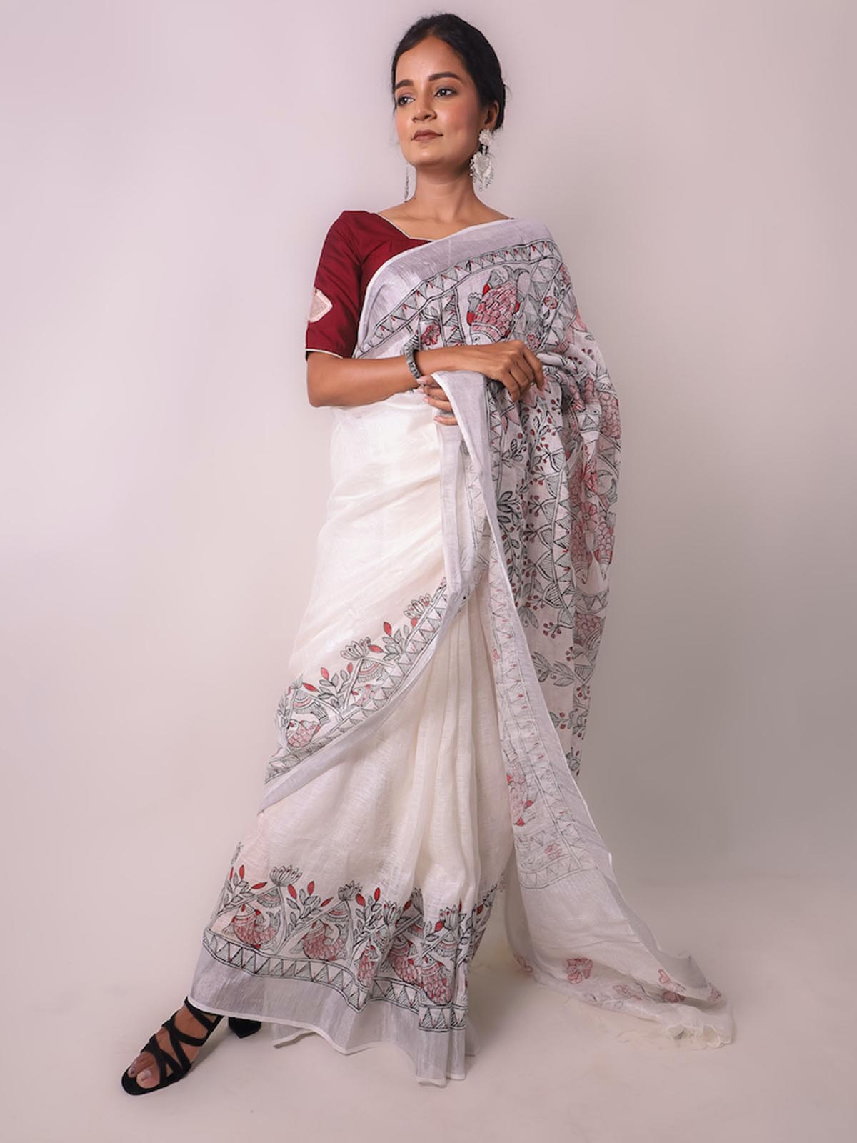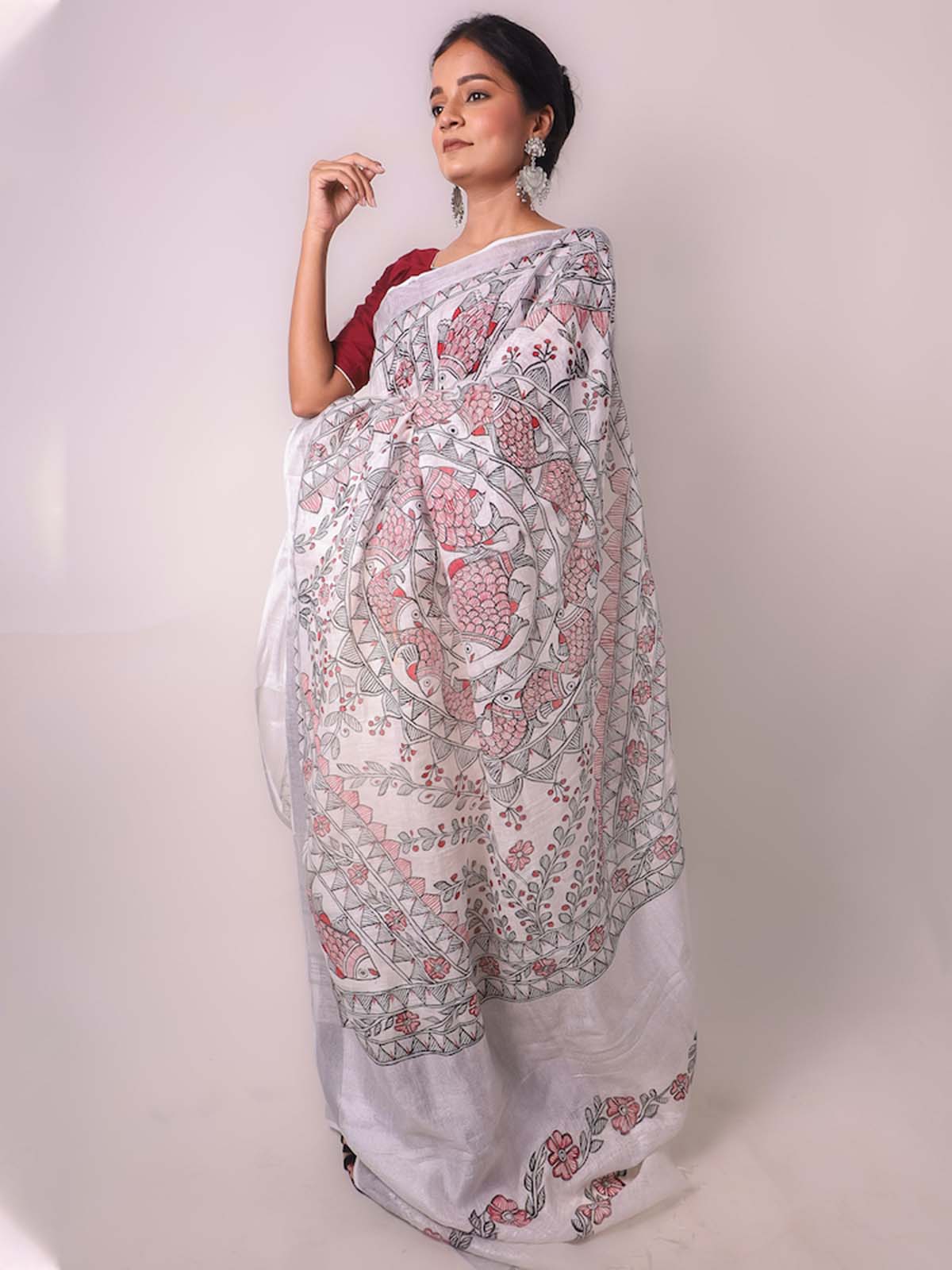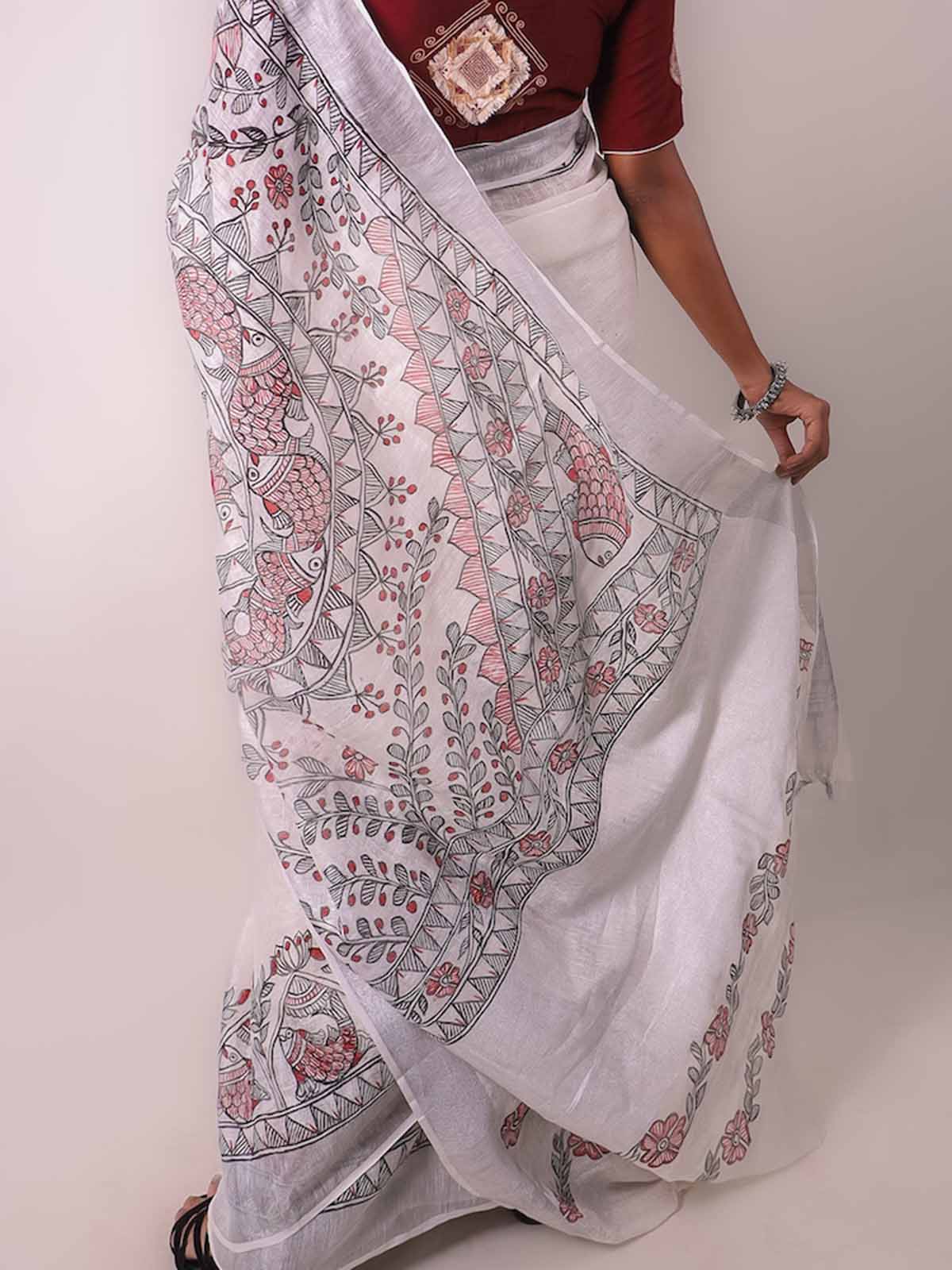 Madhubani painting is a famous art that originated in the Mithila region of Bihar (India). Madhubani hand-painted art is considered to be as old as the era in which Ramayana was set. It is said that inhabitants of the Mithila region painted their homes and streets with Madhubani art. Madhubani paintings were done to celebrate the wedding of Lord Ram and Sita. Madhubani paintings were done using natural colors and twigs of the tree. These days it is done using acrylic paints and brush. Each item is handcrafted with the hand-painting technique, and might carry variations of color, patterns and other delicate inefficiencies. Handloom fabric may have uneven texture.