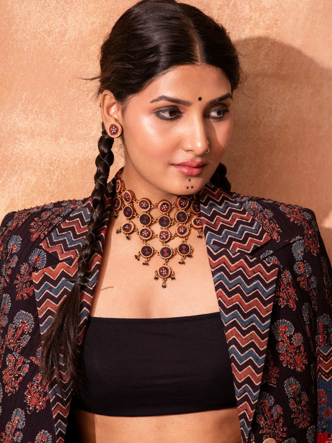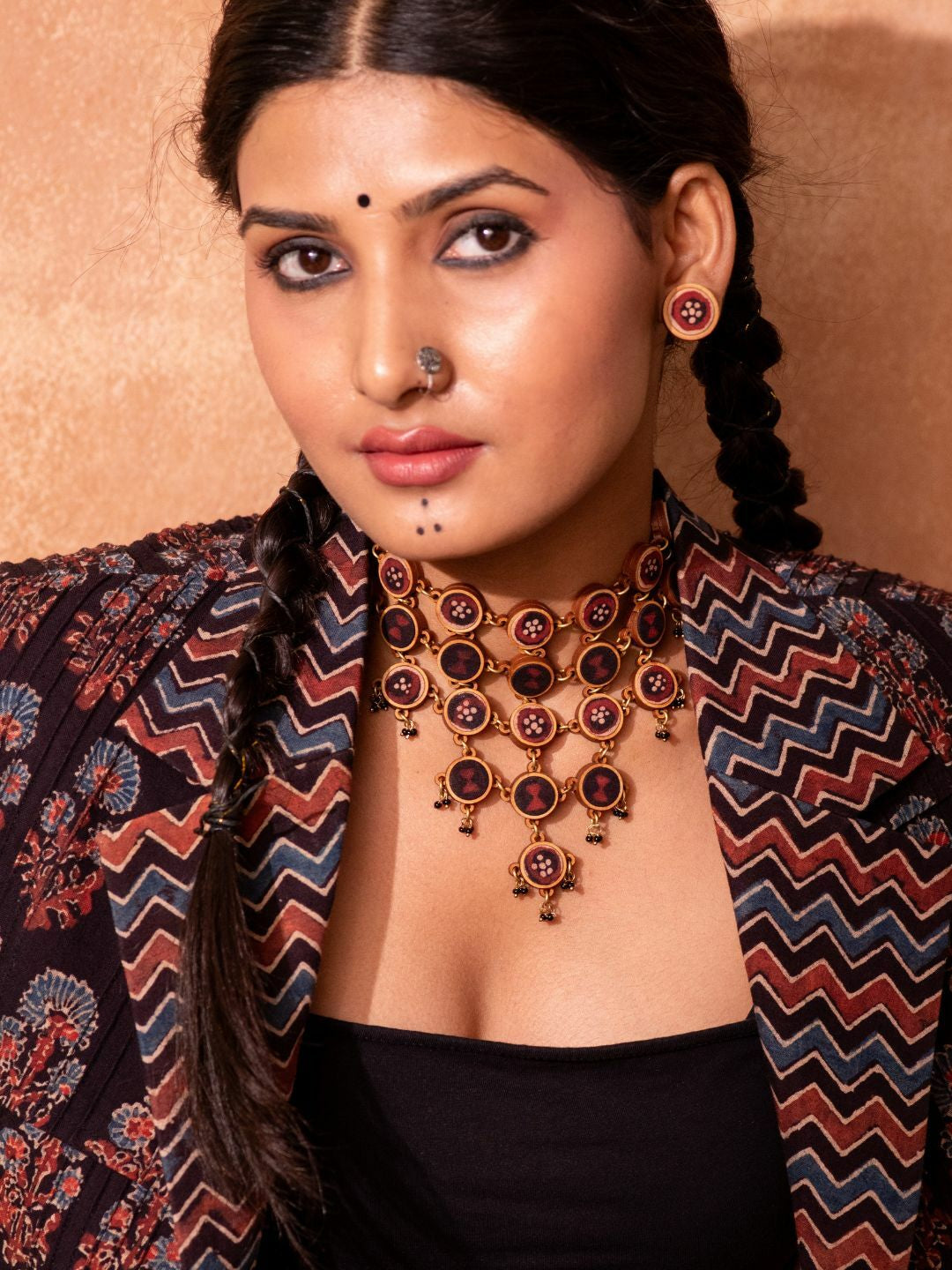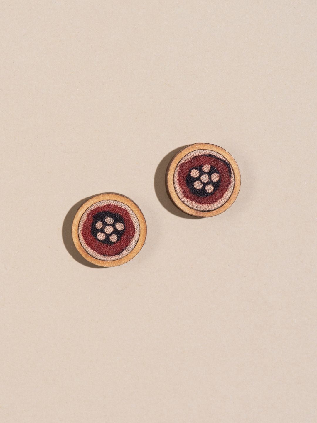Add a touch of sustainable elegance with the Red and Black Wood Stud Earrings. Expertly crafted from repurposed fabric and compressed wood dust, sourced from garment cuttings and furniture production byproducts.