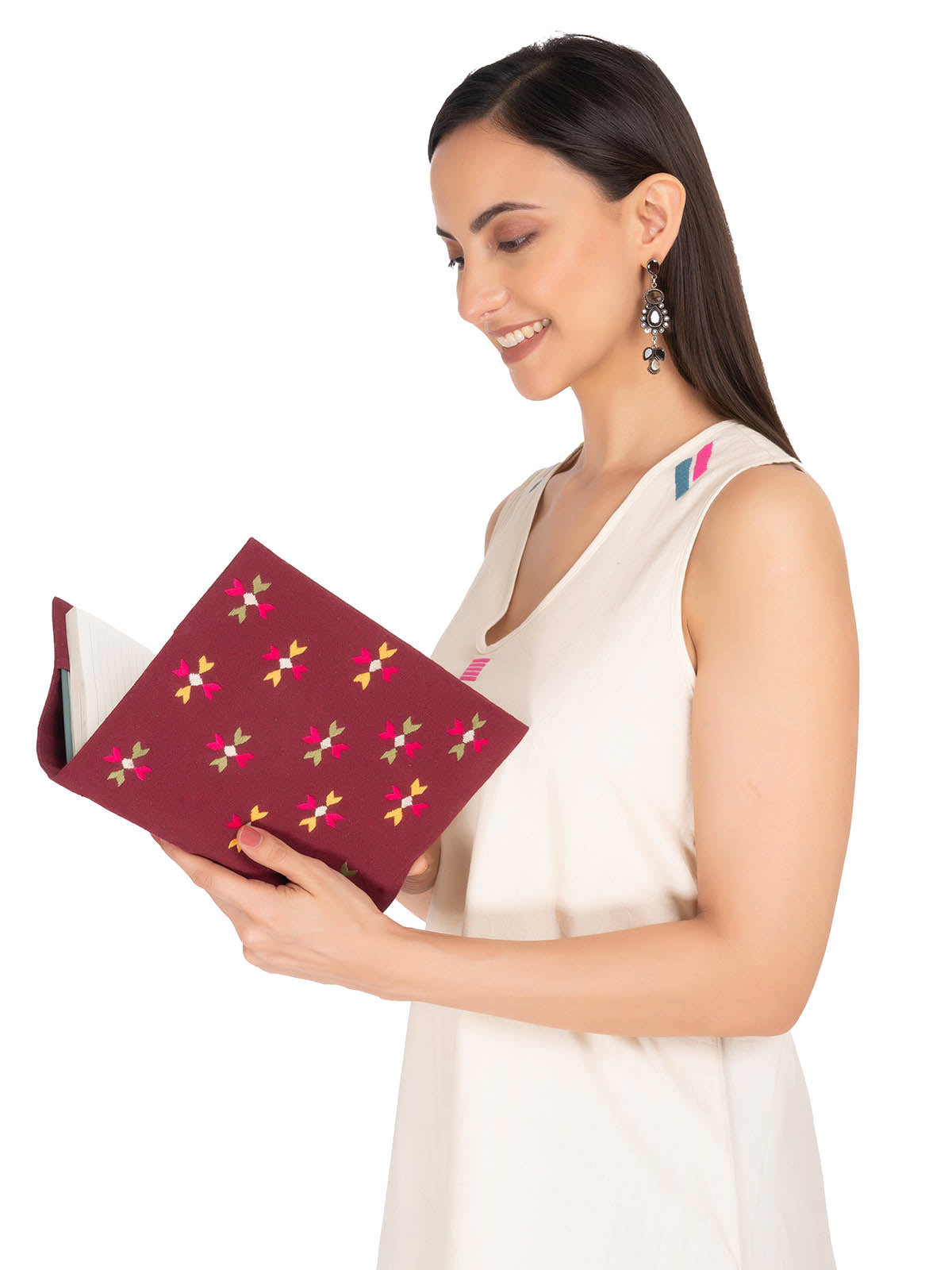 Elevate your writing experience with our Hand Embroidered Diary Cover, featuring a vibrant red notebook adorned with colorful floral designs. This exquisite diary not only serves as a beautiful canvas for your thoughts and ideas but also showcases meticulous craftsmanship that adds a touch of elegance to your stationery collection. Perfect for journaling, note-taking, or as a thoughtful gift, this unique piece combines functionality with artistry, making it a must-have for anyone who appreciates the beauty of handmade items.