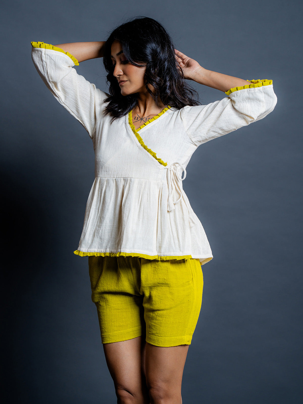Bright, bold and beautifully handwoven, the kiva solid mustard green shorts are a summer staple.Crafted from breathable cotton, they feature a calm, minimal look- making them perfect for pairing with statement tops or matching sets. A pop of sunshine for your conscious wardrobe.