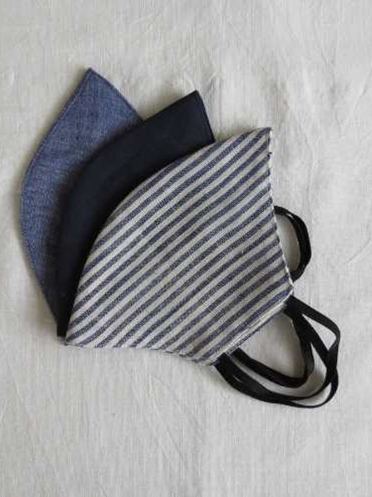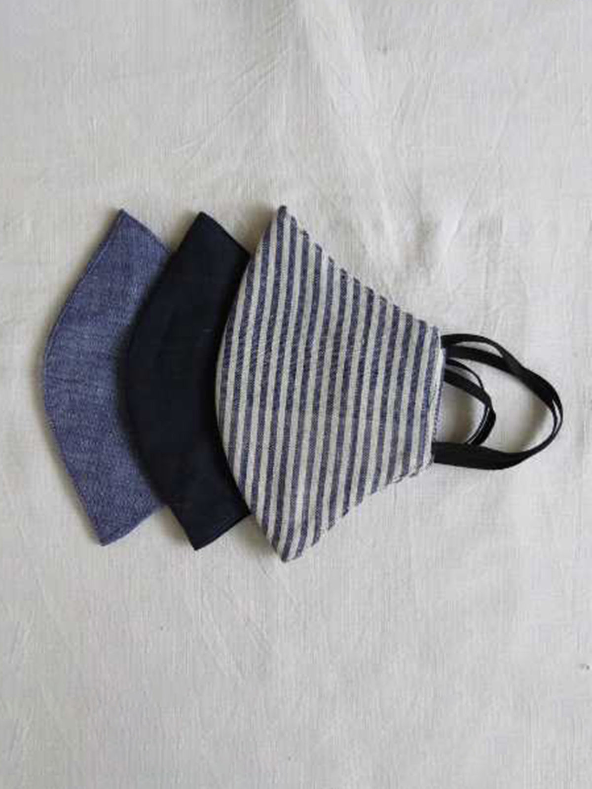 Shades of Blue in handmade & breathable 100% khadi cotton fabric. Ideal for everyday wear. Multi-layered washable fabric face mask with elastic ties.