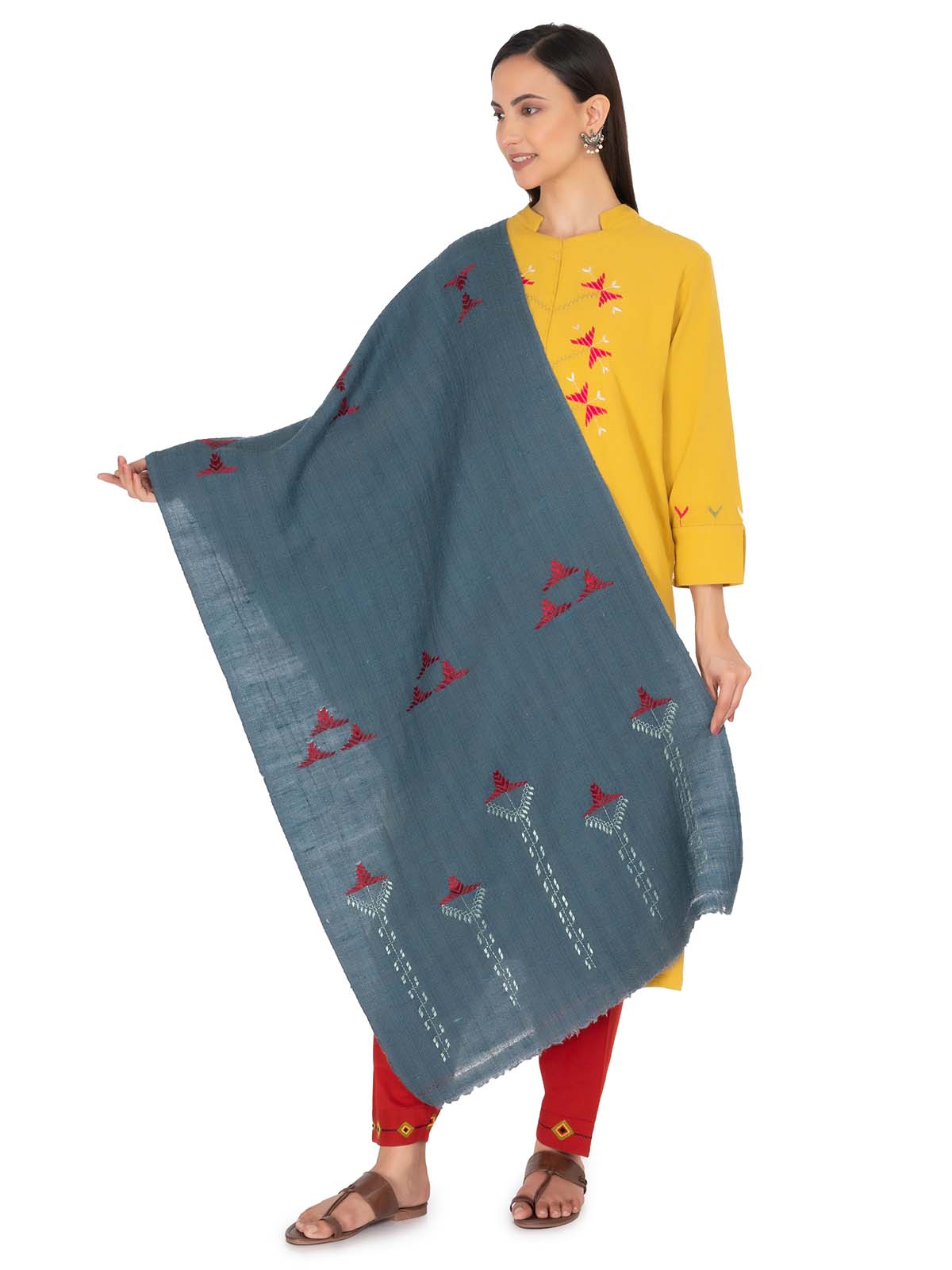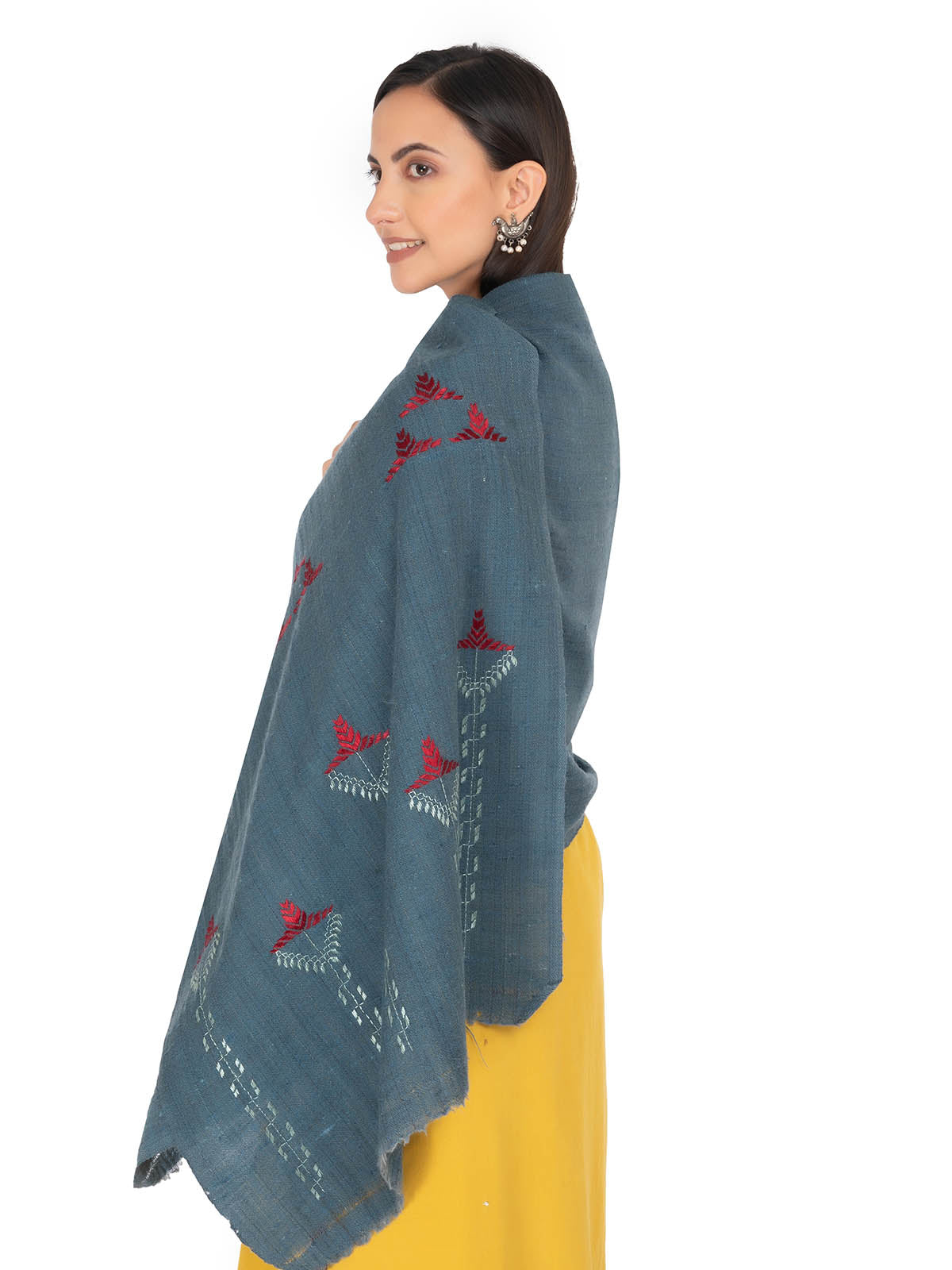 Elevate your wardrobe with our exquisite blue pashmina shawl, beautifully adorned with intricate red motifs embroidery. Crafted from soft, breathable cotton, this shawl offers both comfort and style, making it the perfect accessory for any occasion. Its vibrant colors and elegant design effortlessly enhance your outfit, whether you're dressing up for a special event or adding a touch of sophistication to your everyday look. Embrace the art of layering with this stunning piece that combines tradition with modern flair.