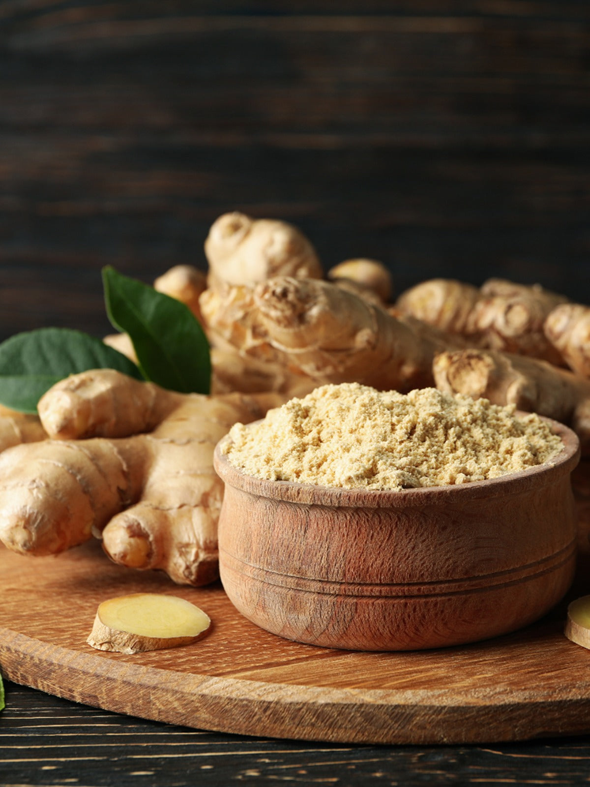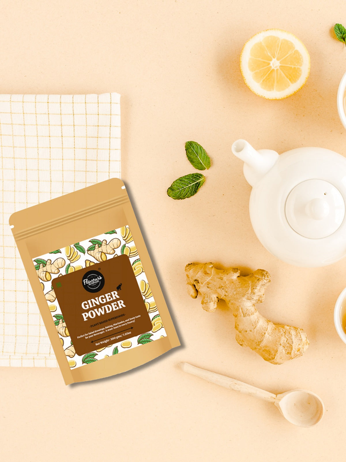Ginger powder is made from dried ginger root. Fresh ginger roots are washed, sundried, and then ground up to get a fine powder. Dry ginger powder has warming properties and improves the cardiovascular system, keeps your respiratory system in tune, increases appetite, aids digestion, and also serves as a detoxifying agent. Ginger powder is used in the kitchen for making candies, curries, marinades, stews, masala, tea and gingerbread, and other baked goods.