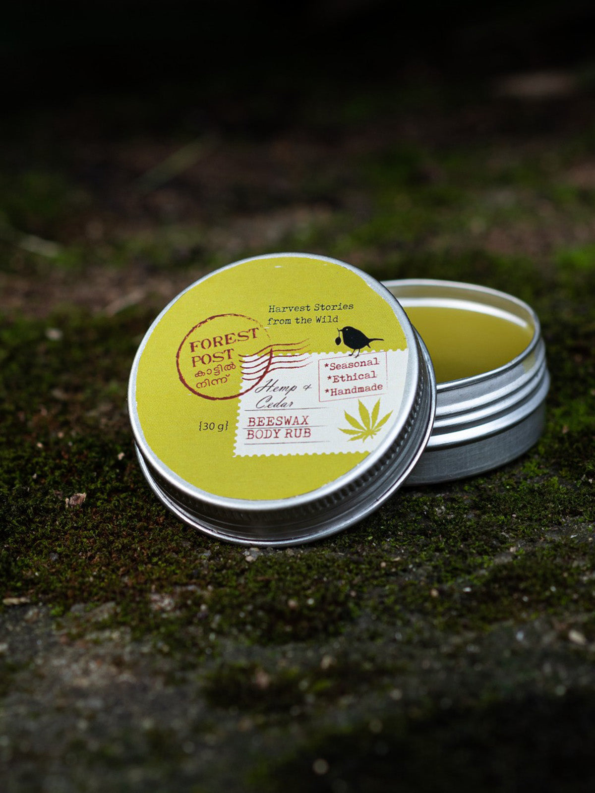 Body butter with beeswax, castor oil, olive oil, hemp seed oil and kokkum butter. Regenerative properties. Works best as deoderant. Cedar and lemon essential oils for fragrance. Safe even as lip balm.