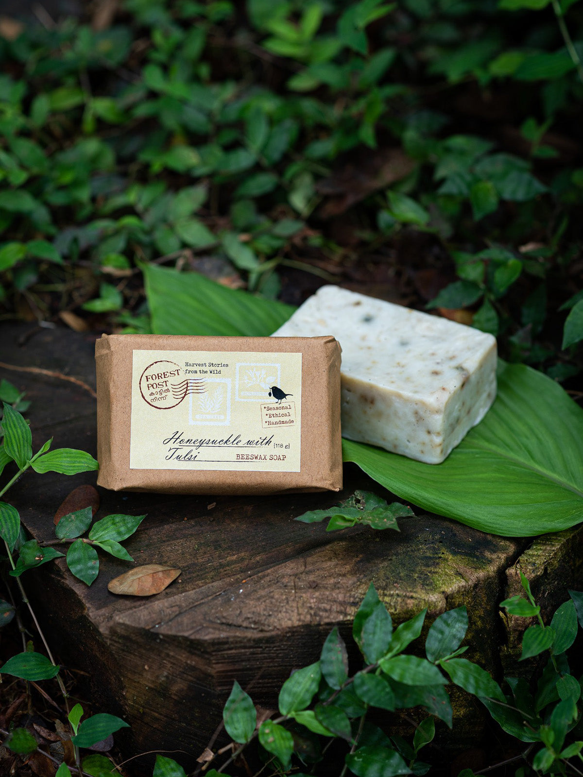 Beeswax is sourced from local forests and the soaps are handmade in small batches by women in Karikkadav Village, Kerala which is anti allergen and hydrating. No parabens, sulphates or phthalates. Pure essential oils give the bathing experience the uniqueness.