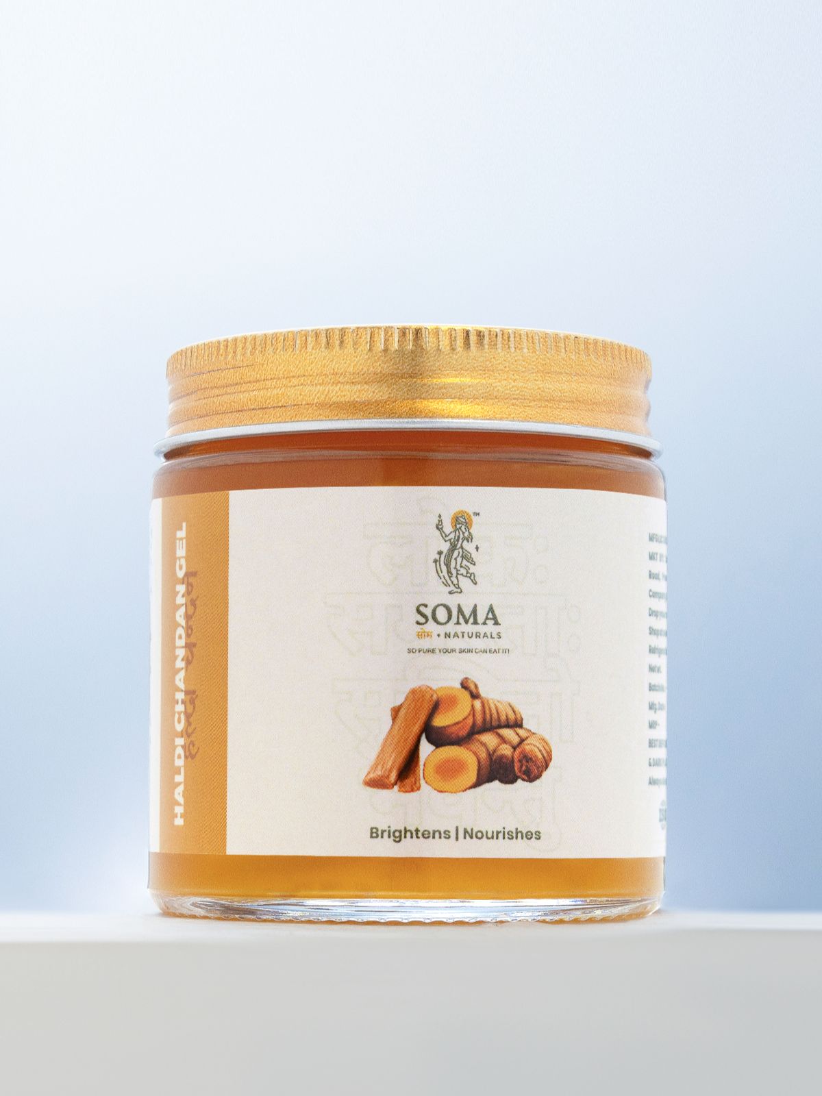 Step into tradition with this Haldi Chandan Gel, a blend of turmeric and sandalwood reminiscent of a mother's loving touch on a bride-to-be. Beyond a mere tagline, experience real purity as it balances skin imbalances, enhances complexion, and promotes healing. Elevate your skincare ritual with the Haldi-Chandan gel. Crafted so pure, that your skin craves it.