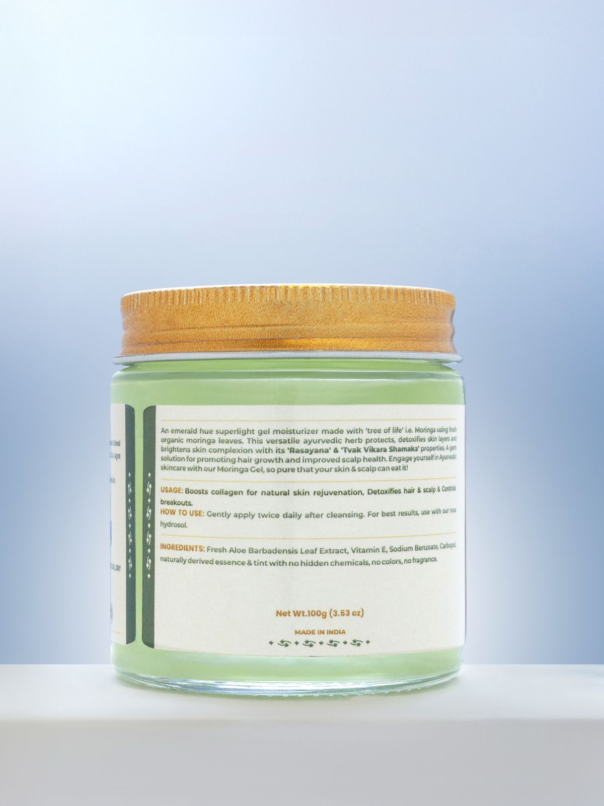 Discover the essence of purity with this Moringa Gel, brewed from the miraculous Moringa leaf. Rich in vitamin C, it unlocks nature's radiance and youth, reducing pore size and minimizing dark spots. Embrace Ayurvedic skincare with the Moringa Gel, crafted so pure, your skin savors its nourishment.
