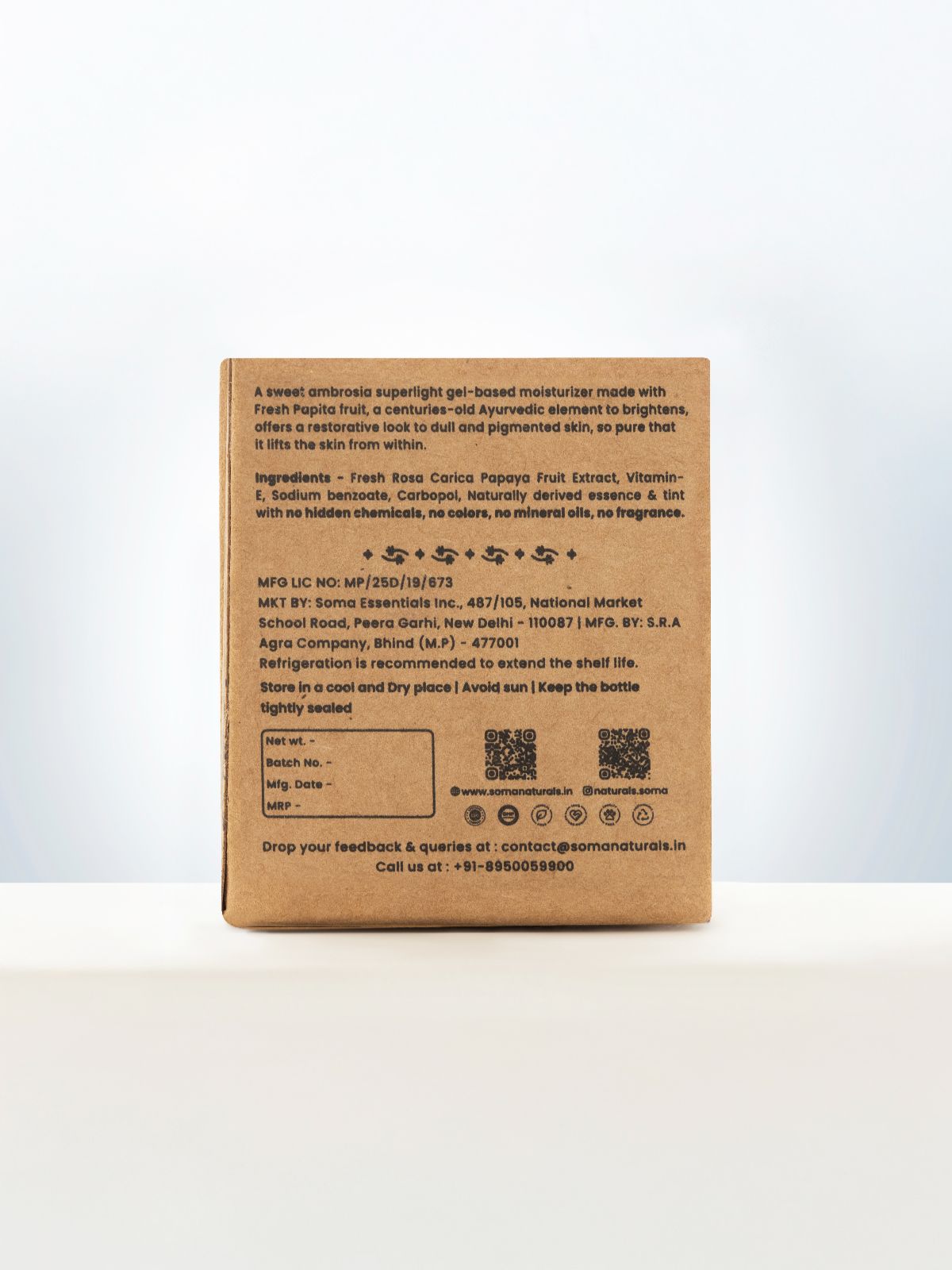 Discover the power of purity with the Papaya Gel, featuring the natural brightness and anti-aging benefits of Papaya. Experience enhanced complexion and detoxification with its Varnya and Vishaghna properties. Restore your skin's radiance with this Papaya Gel, lifting it from within with each use.
