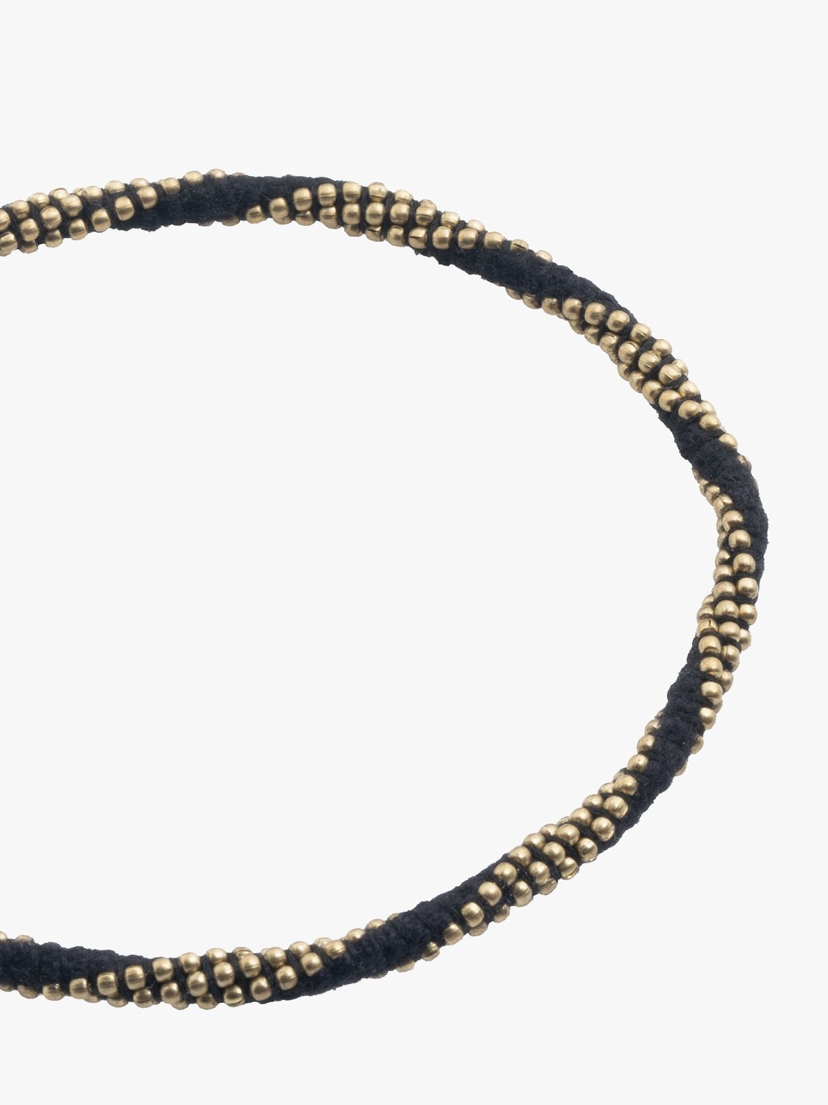 Subtle yet elegant, this handcrafted Patwa thread anklet features bold black threadwork paired with rows of delicate gold-toned beads. Lightweight and comfortable, this anklet is a perfect everyday accessory to add a minimal ethnic touch to casual and festive outfits.