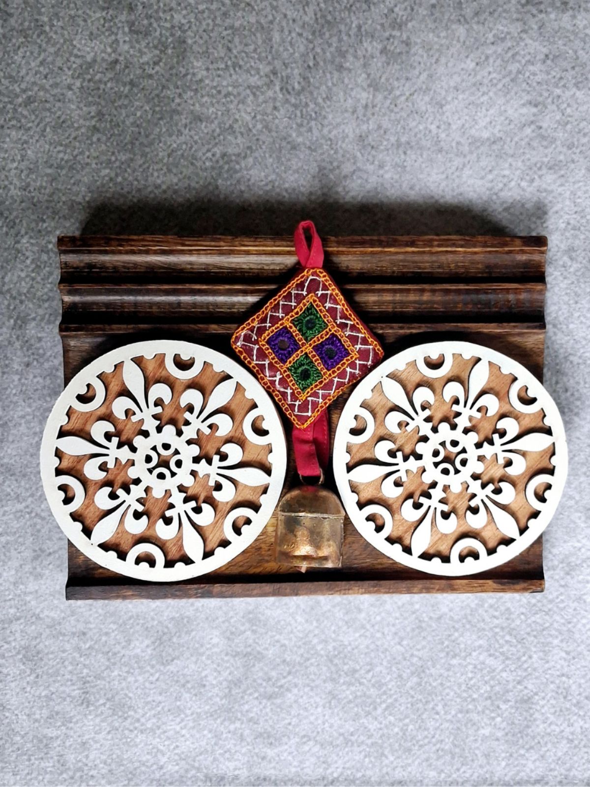 Crafted from premium timber, this collection showcases meticulous artisanal work. Each wooden tray undergoes careful selection, precision cutting, and thorough sanding before receiving a natural finish that enhances both aesthetics and longevity. The hand-forged copper bell demonstrates traditional metalworking expertise—heated, shaped by skilled craftspeople, and polished to achieve an authentic patina. Complementing the set are hardwood coasters featuring intricately carved designs executed with precision tools. Every coaster is meticulously finished with protective varnish, ensuring durability while maintaining the refined appearance characteristic of heritage craftsmanship. This ensemble represents a harmonious blend of functional design and traditional artisanal techniques.