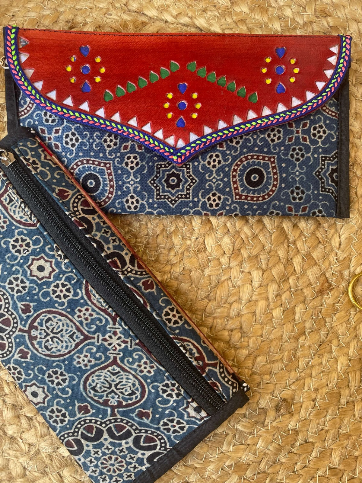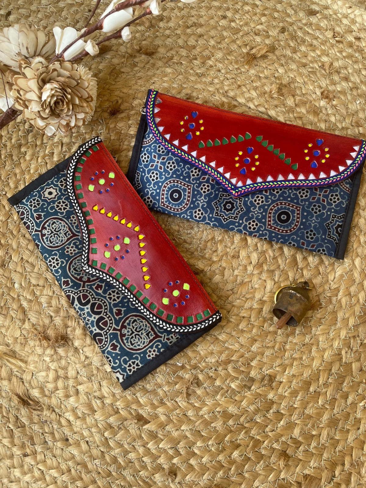 Crafted with Ajrakh silk fabric and premium leather, this wallet embodies traditional Kutch craftsmanship with a modern twist. Stylish, durable, and inherently luxurious, it offers functional elegance and a cultural edge, perfect for fashion-conscious individuals who value artisanal finesse.