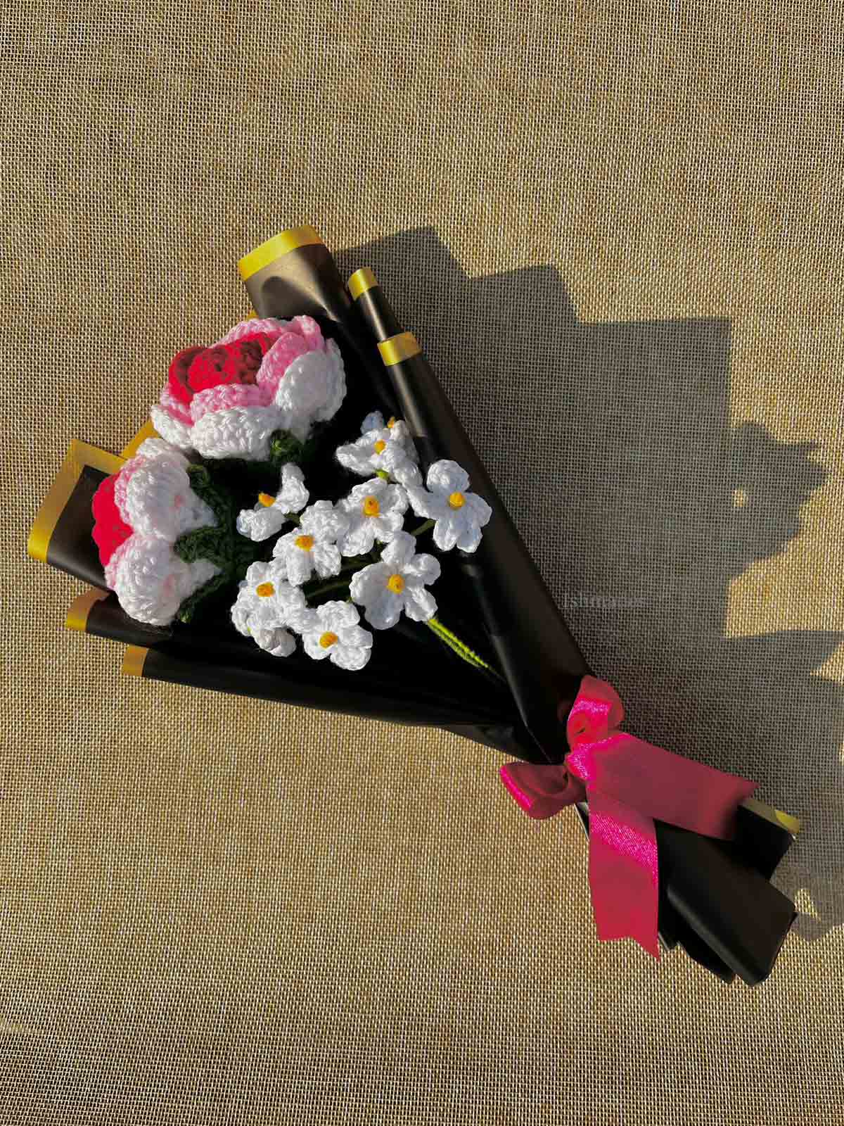 Embodying timeless love and cherished memories, the Forever Yours bouquet is a stunning arrangement of two tri-color roses paired with a delicate bunch of 10 forget-me-not flowers. Each rose, measuring 10-12 inches, showcases vibrant hues of white, pink, and soft peach, symbolizing purity, affection, and devotion. The forget-me-nots, with their soft blue petals and intricate beauty, carry the timeless message of remembrance and enduring connection. This bouquet is more than just a gift—it is a promise of lasting love, a symbol of affection that never fades. The tri-color roses reflect the multifaceted nature of love—gentle, passionate, and eternal—while the forget-me-nots ensure that your feelings are remembered, no matter the distance or time. Whether it's an anniversary, a heartfelt gesture, or a way to celebrate a special bond, the Forever Yours bouquet speaks to the heart. It’s the perfect tribute to someone you want to remind that your love, much like the flowers, will last forever.