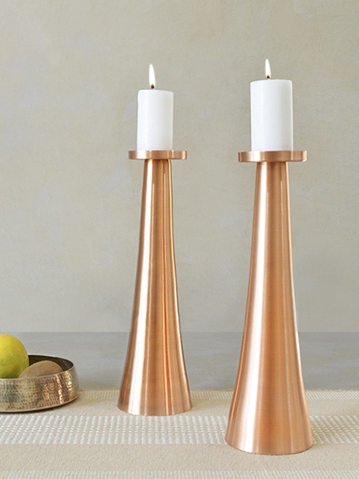 The Monolith Candle Stand makes a statement of pure elegance with its rose gold hue and sleek finish. Great for a console table or dining area. Perfect to take home and for gifting. Handmade in pure copper.