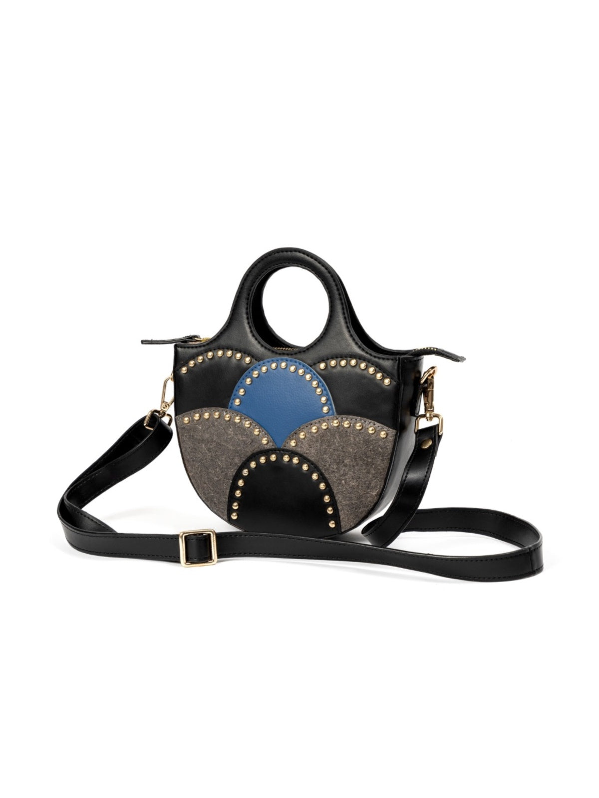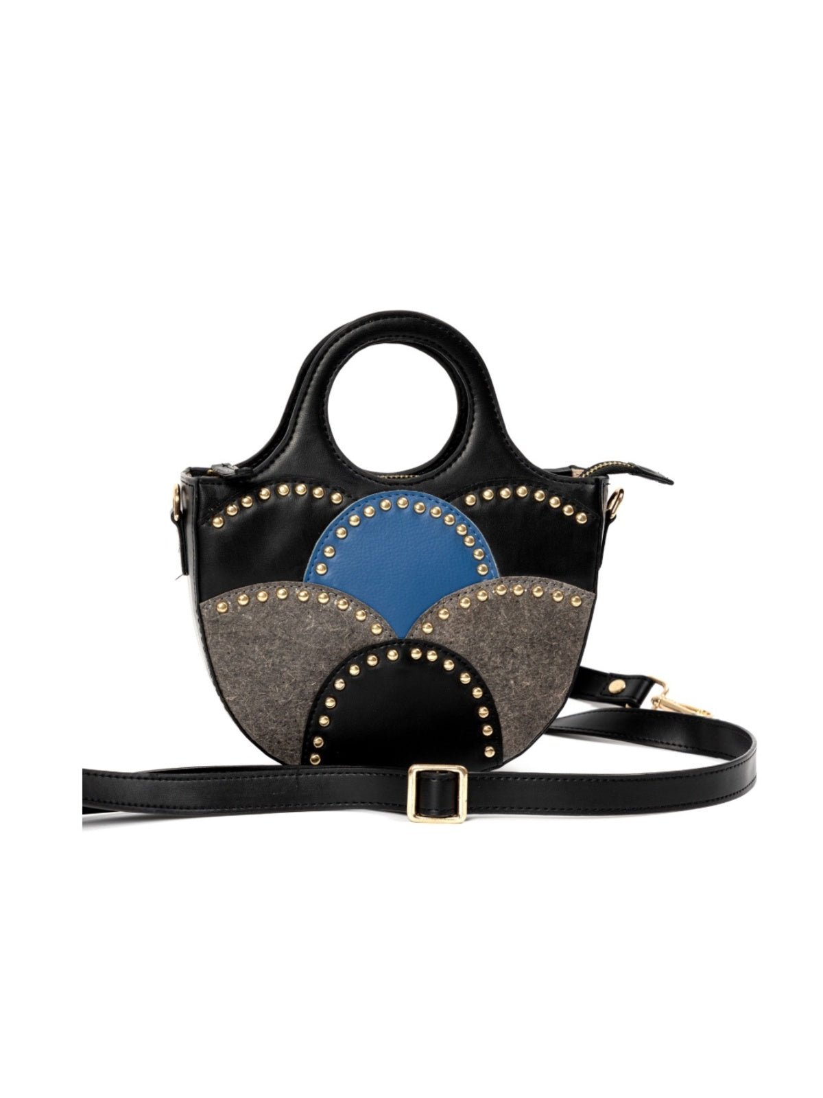 A modern classic with artisanal charm, the Savannah Sling is crafted from premium vegan leather in bold contrasting hues. Detailed with antique rivets and a structured cutout handle, it offers sophistication and practicality. Its adjustable strap ensures versatility, making it perfect for elevating everyday looks or complementing special events.