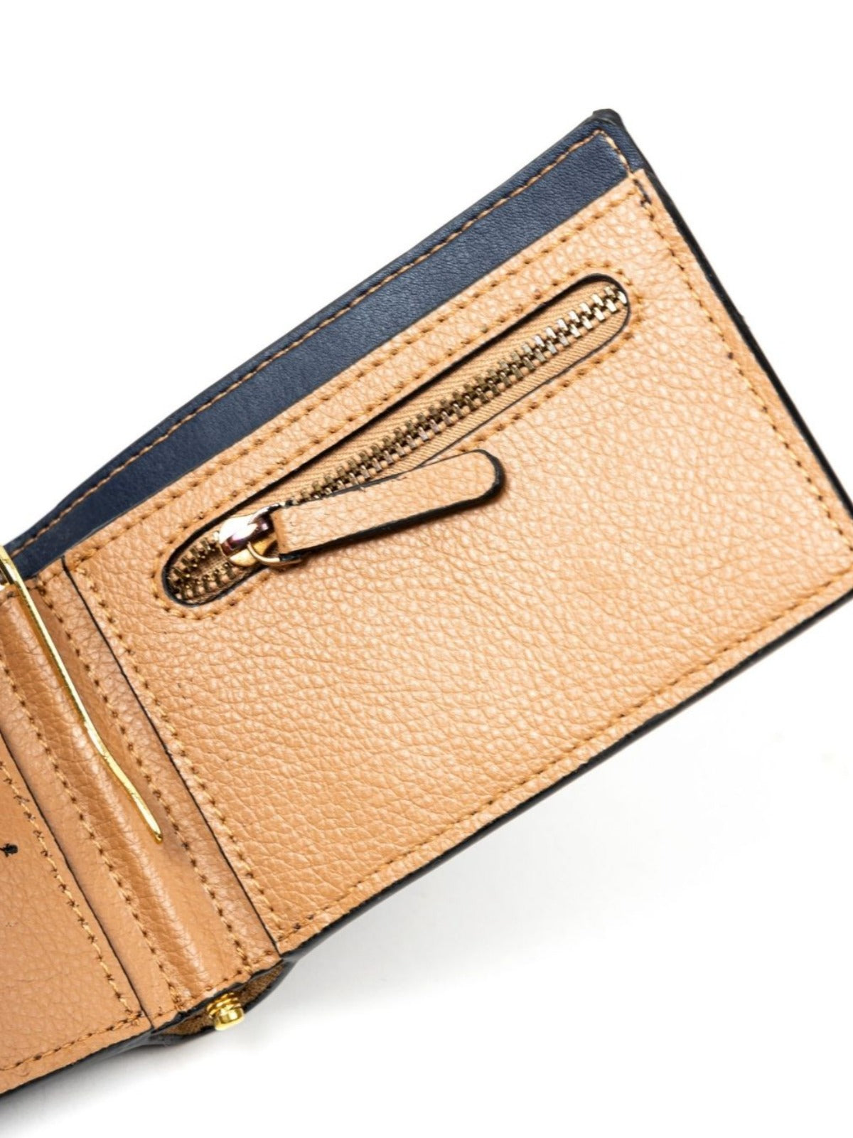 The Zeus Wallet in navy blue is a refined bifold design with a bold contrast finish for a touch of luxury. Featuring dedicated card slots, cash sections, and a coin pocket, it also includes a sleek money clip. Compact yet practical, it elevates everyday essentials with timeless sophistication.
