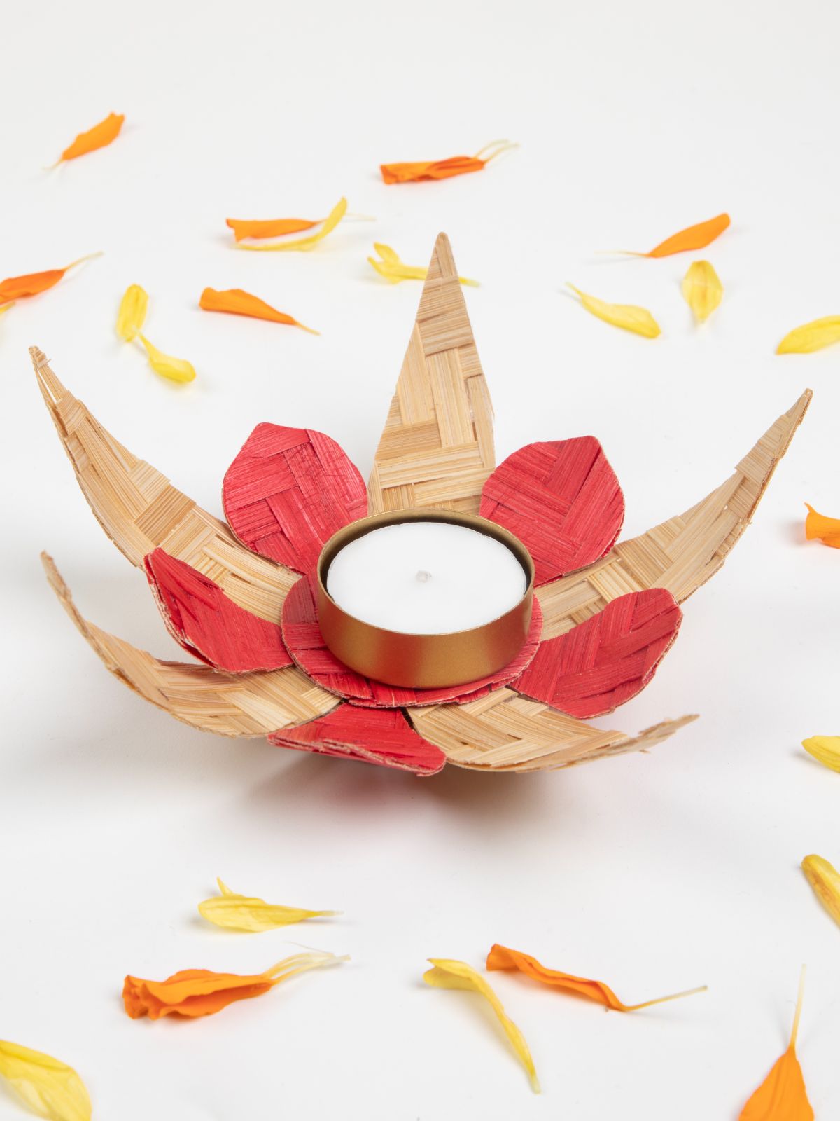 Celebrate light and tradition with these handwoven bamboo tea light holders. Inspired by natural mango leaf motifs, they radiate warmth and earthy elegance. Perfect for special occasions or everyday charm, this sustainable set enhances spaces with a soothing glow and timeless artistry.
