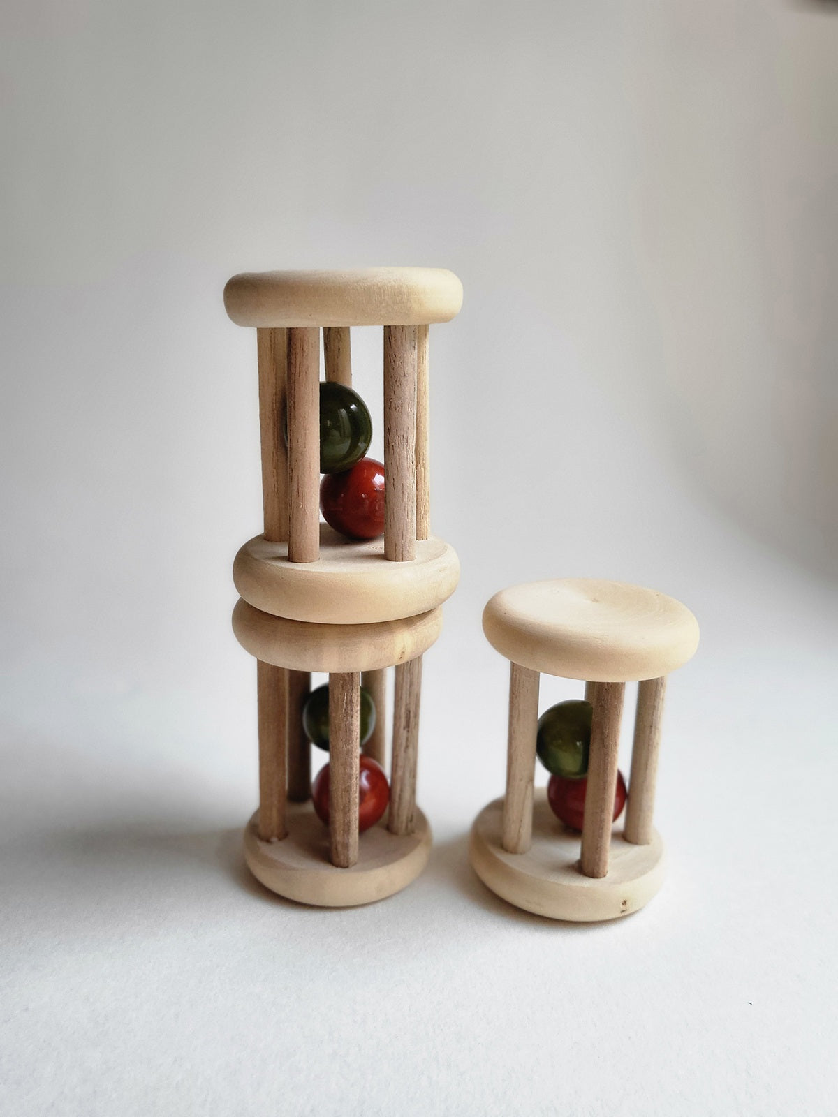 Introducing our Mini Rolling Rattle – the perfect tool to engage your little one’s senses and nurture their development. Crafted from safe materials, these petite dumbbells are designed for tiny hands to grasp and shake, promoting grip strength and fine motor skills. The gentle rattling sound not only soothes but also enhances auditory development, captivating your baby’s attention during play and bedtime. With vibrant colors and captivating sounds, Mini Rolling Rattle offers a cherished playtime companion, providing a delightful sensory experience while cultivating essential developmental skills. This set includes : 1 rattle and 1 cloth bag. As this product is handcrafted, there might be a slight colour or design variation, which is natural and makes the product unique. No two products may look exactly identical.