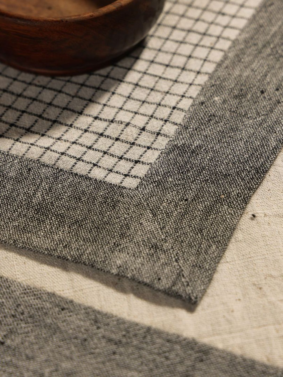 Elevate your dining experience with this set of four handwoven cotton placemats, expertly crafted to combine style and functionality. Each placemat features a unique patchwork design on one side, showcasing intricate craftsmanship and vibrant textures, while the reverse side offers a sleek, solid black finish for versatile table settings. The reversible design allows you to effortlessly switch between casual and formal looks, protecting your table from spills and scratches with durable, easy-to-clean cotton fabric. Perfect for adding a touch of artisanal elegance to everyday meals or special occasions.