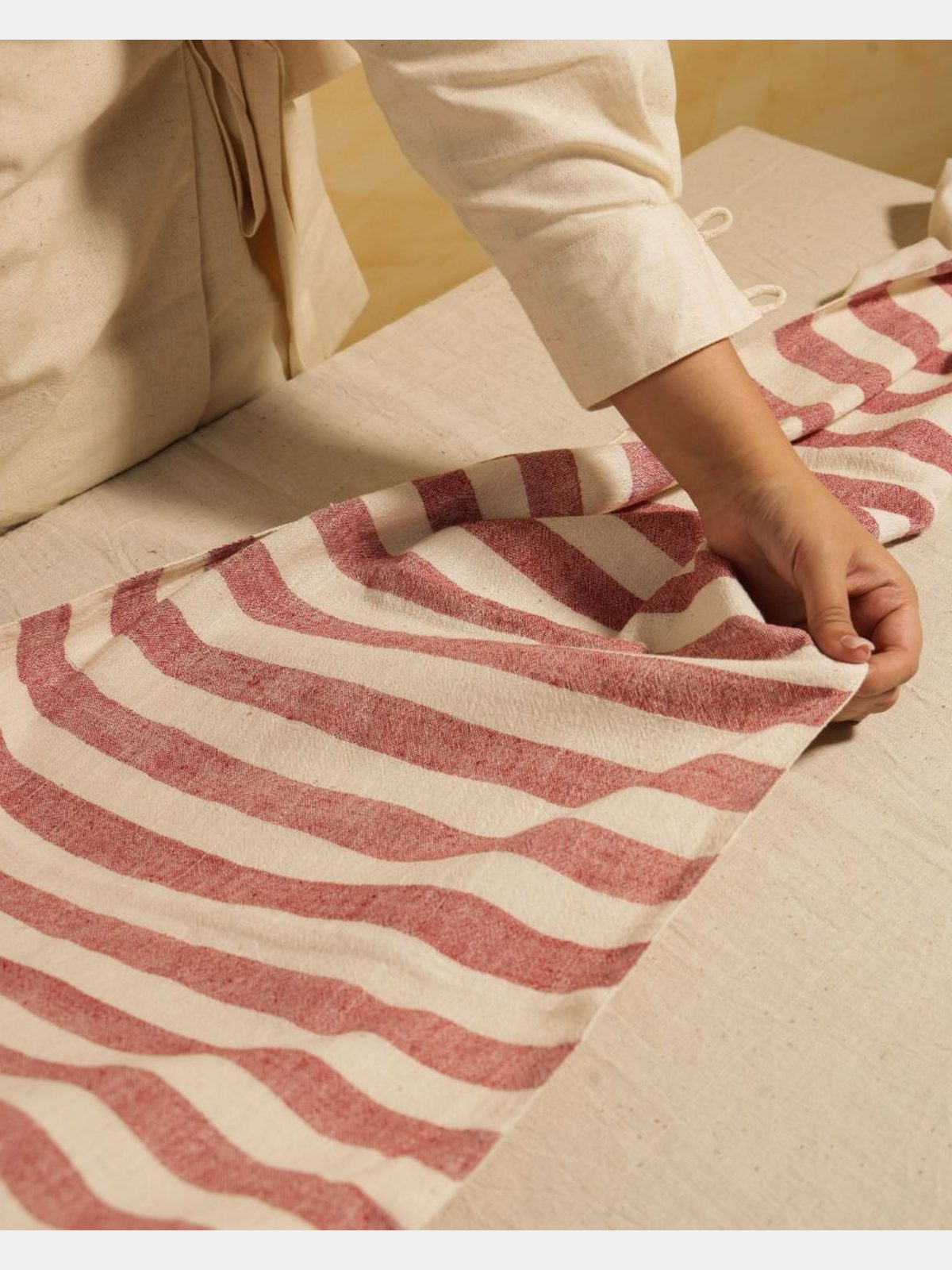 Elevate your dining experience with this handloom cotton table runner, expertly crafted to combine durability with aesthetic appeal. Featuring a timeless striped design, it adds a subtle yet sophisticated touch to any table setting. The natural cotton fabric ensures breathability and easy maintenance, making it ideal for both everyday use and special occasions. Its handcrafted quality reflects traditional weaving techniques, offering a unique texture and character that machine-made alternatives cannot match. Perfect for enhancing your home décor while protecting your table surface, this runner blends functionality with artisanal charm.