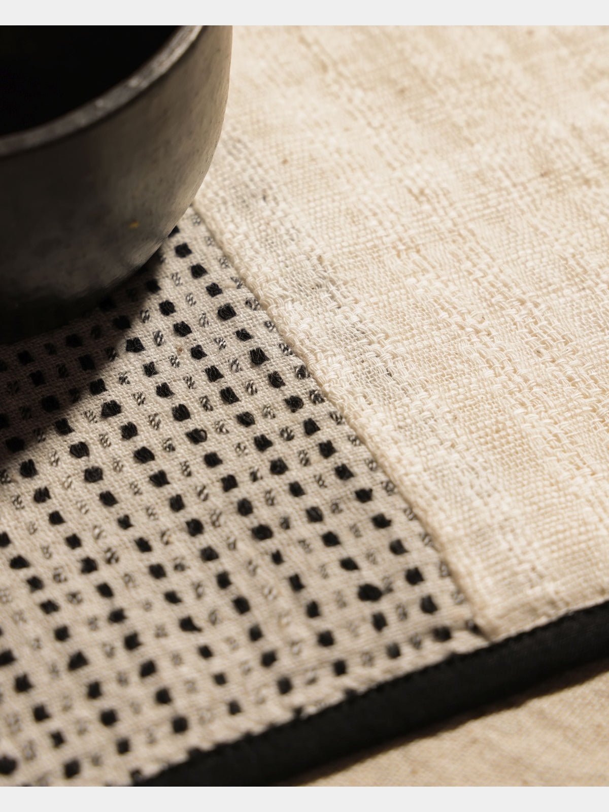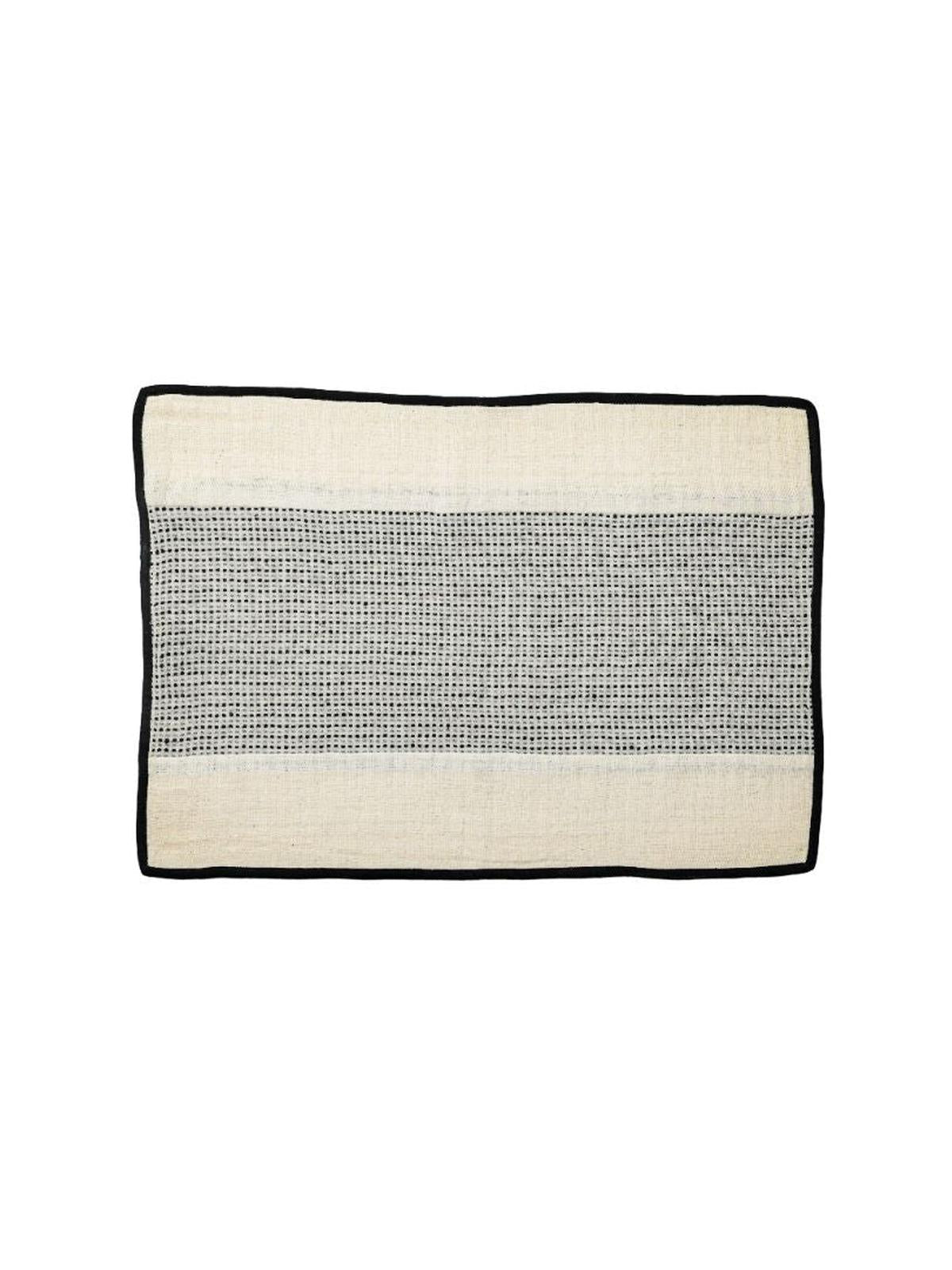 Handwoven from premium cotton, the Linea placemats come in a set of four, each featuring a unique reversible patchwork design meticulously woven on a traditional loom. The craftsmanship highlights intricate patterns that add texture and depth to your dining experience. Accented with striking black piping, these placemats not only protect your table but also elevate your table setting with a sophisticated, artisanal touch. Durable and easy to clean, they combine functionality with elegant design, making them an ideal choice for both everyday meals and special occasions.