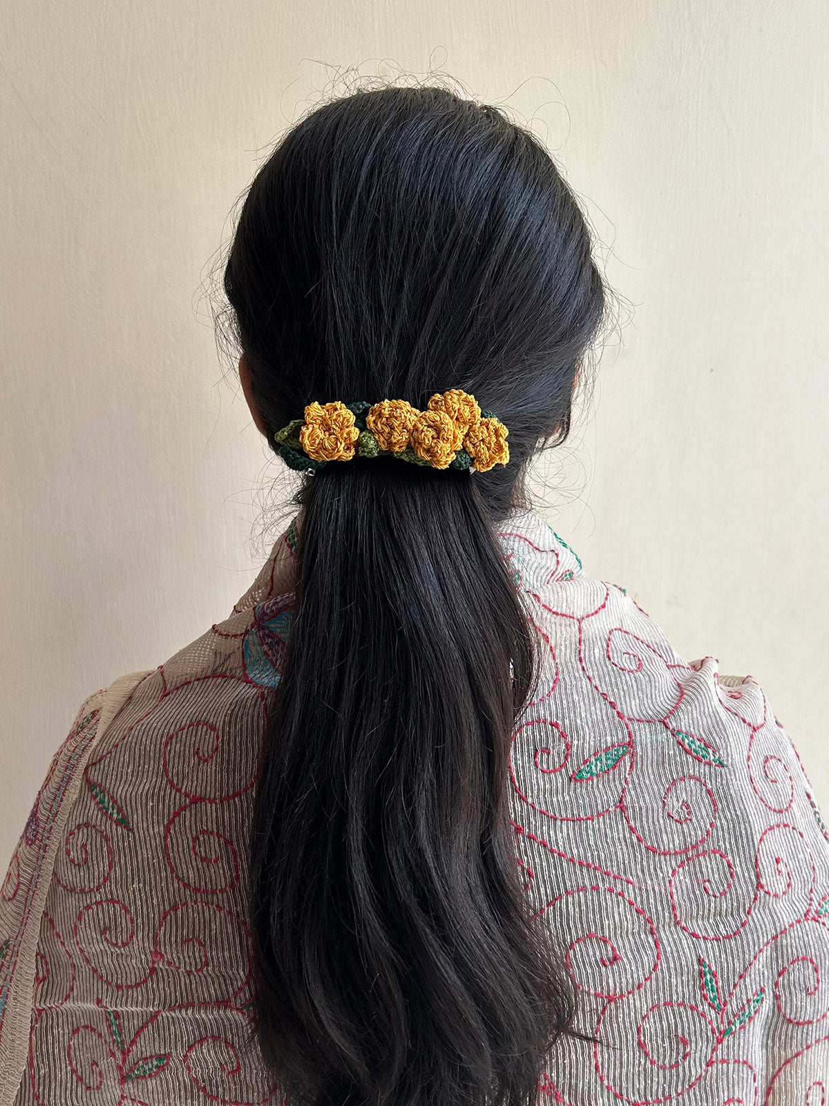 Embrace timeless beauty and adorn your locks with our exquisite hand-crocheted hair clips. Each clip is a masterpiece of artisanal skill, meticulously crafted with intricate details and precise design. Made from premium cotton yarn, these delicate accessories are more than just embellishments – they are symbols of care and craftsmanship. Join us in supporting local women artisans and elevate your style with the elegance of hand-crocheted perfection.