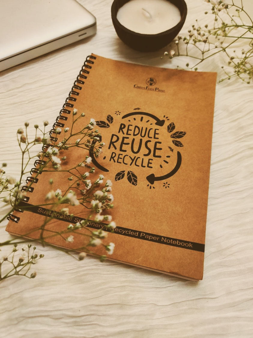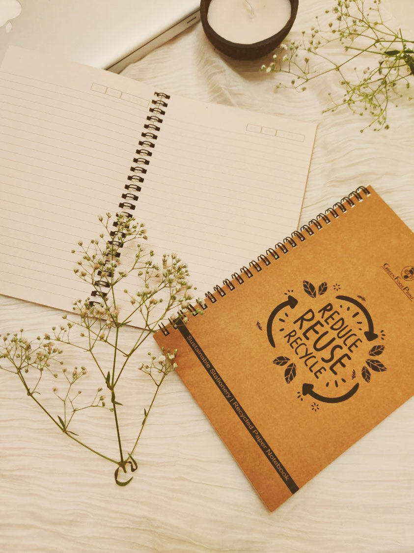 A guilt free space to put down all those thoughts, the old school notebooks, but with a sustainable avatar! The Cover is made of recycled Kraft paper, and the inner pages are also unbleached recycled paper making it a 100% sustainable product. The binding is made of metal which can be recycled after using. The notebooks are available in A5 Size.
