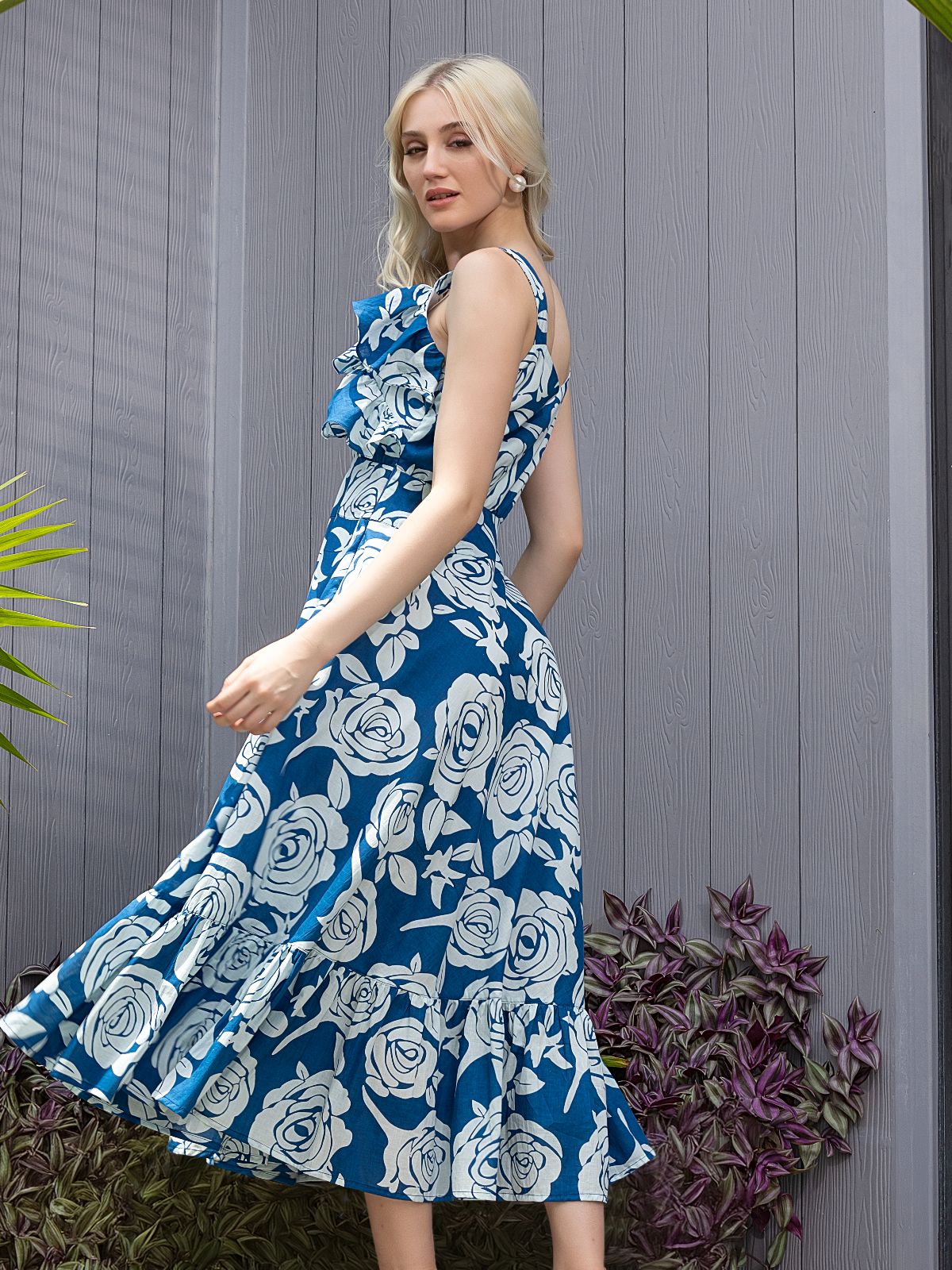 Glacier Bloom Ruffled Detail Fit & Flare Midi Dress