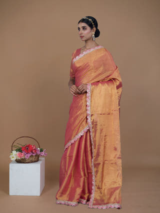 Anantya Neon Orange Handloom Tissue Kurta Pant Set With Dupatta