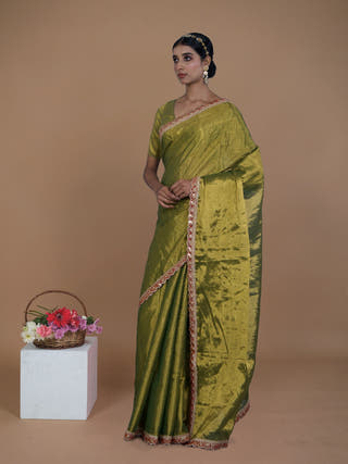 Avyaya Neon Green Handloom Tissue Kurta Pant Set With Dupatta