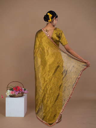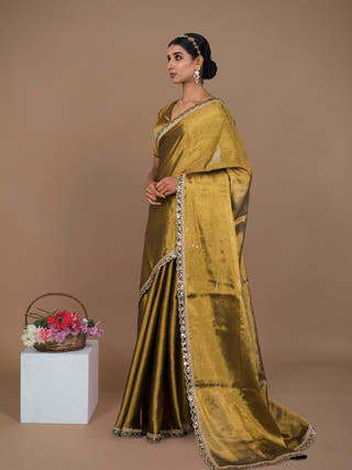 Swarnaya Golden Handloom Tissue Kurta Pant Set With Dupatta