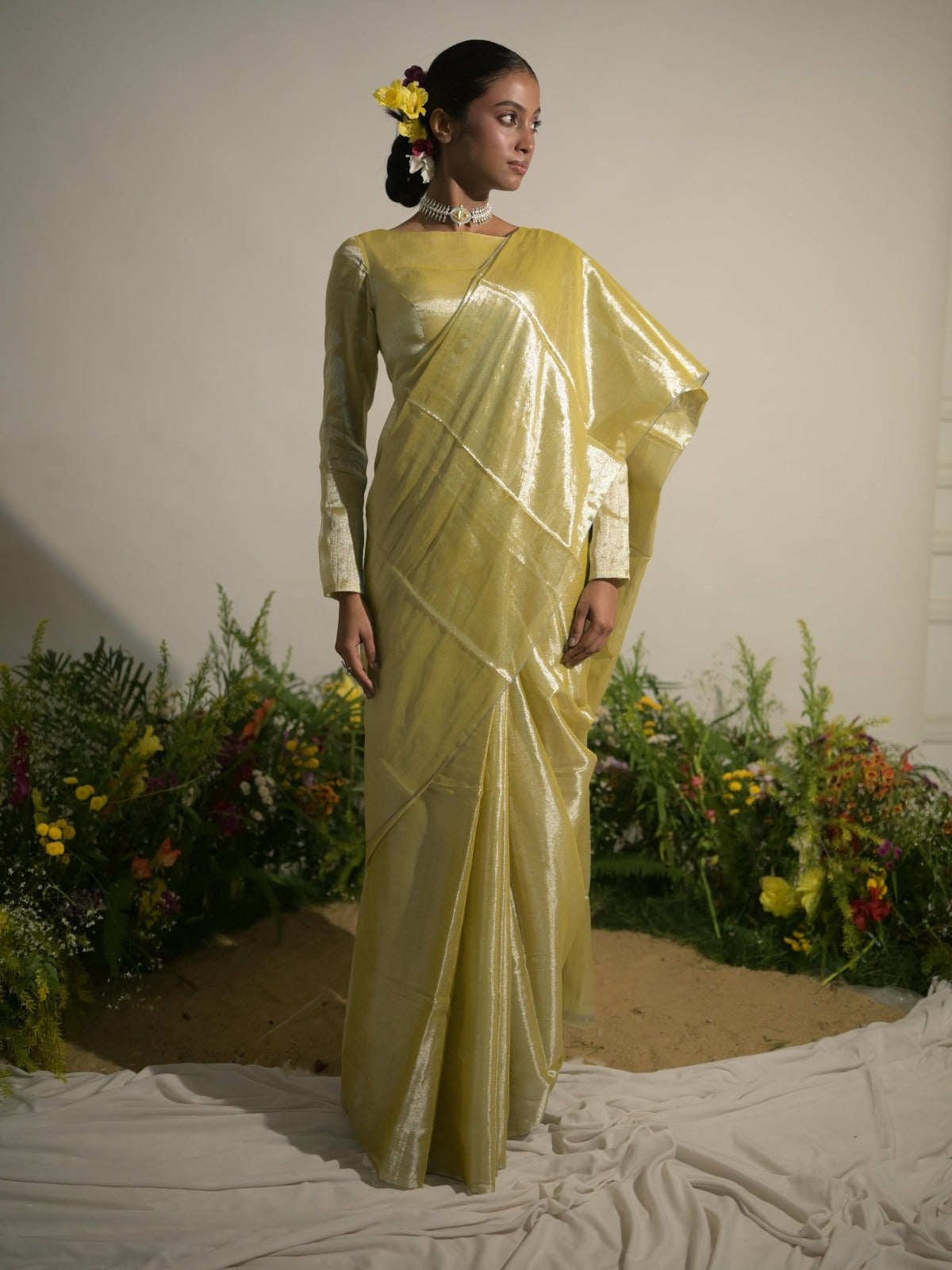 Buttercup Spice Neon Olive Tissue Saree