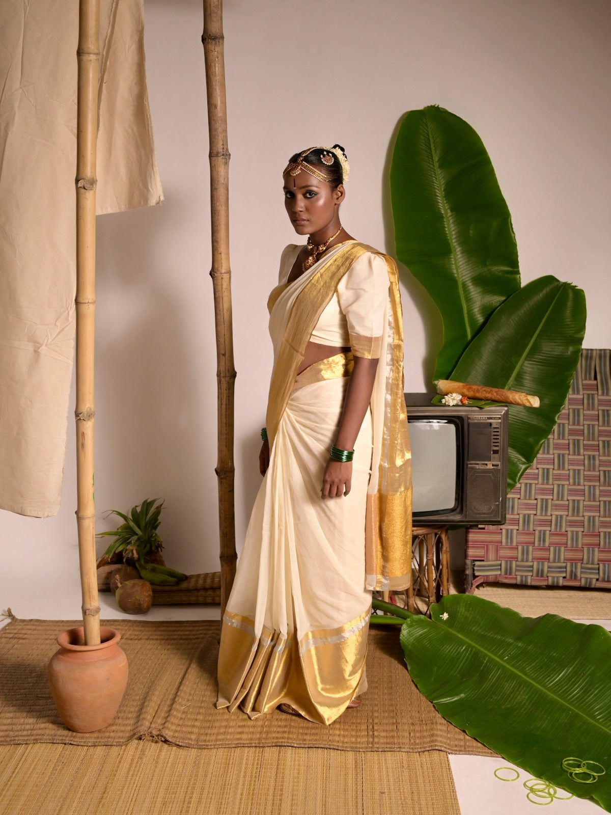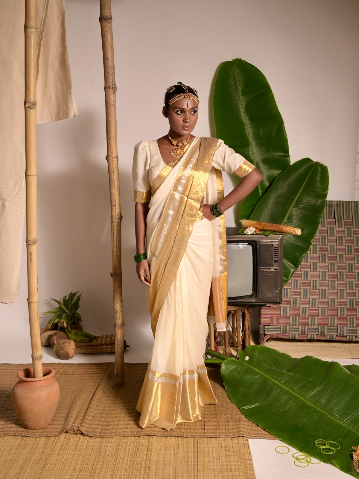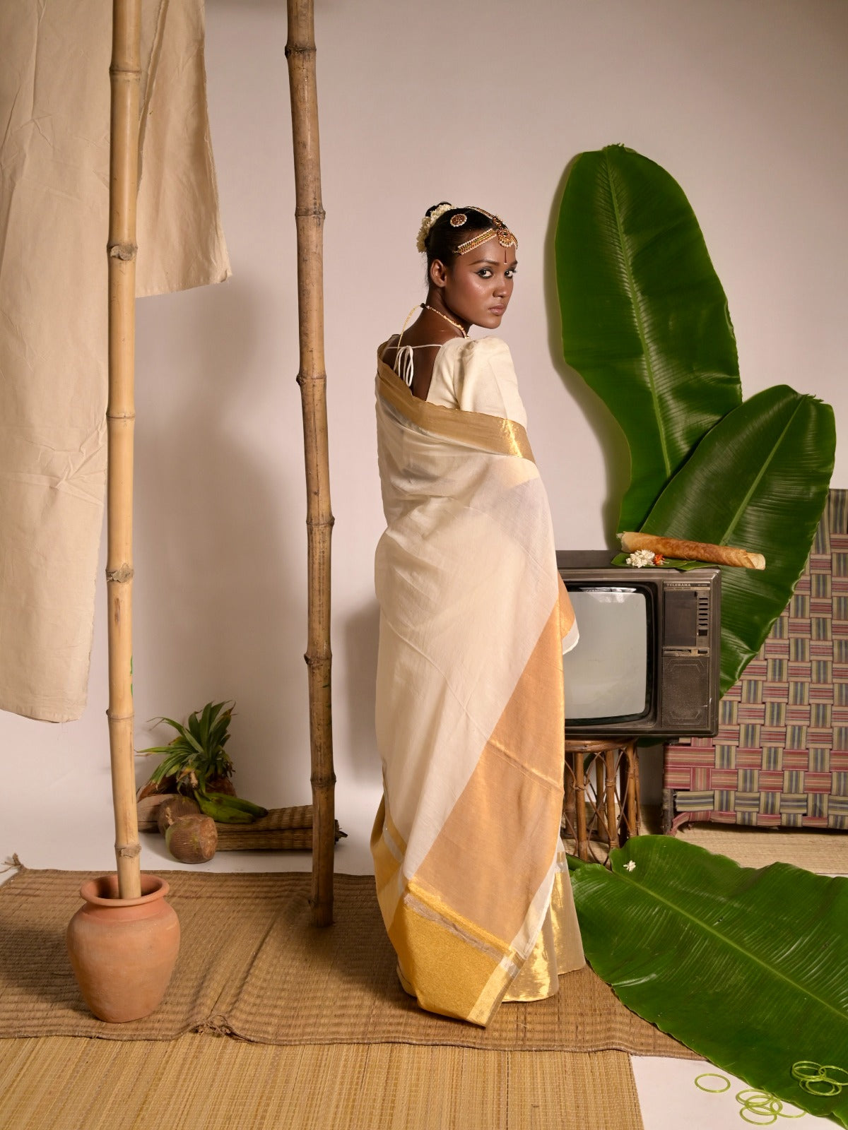 Experience understated elegance with this off-white mul cotton saree, beautifully woven over five days. Crafted from soft, breathable, and comfortable fabric, it drapes effortlessly for all-day ease. The delicate combination of gold and silver zari borders adds a subtle touch of luxury, perfectly complementing the serene white base. Ideal for both everyday grace and special gatherings, this saree embodies timeless simplicity with a hint of festive shimmer.
