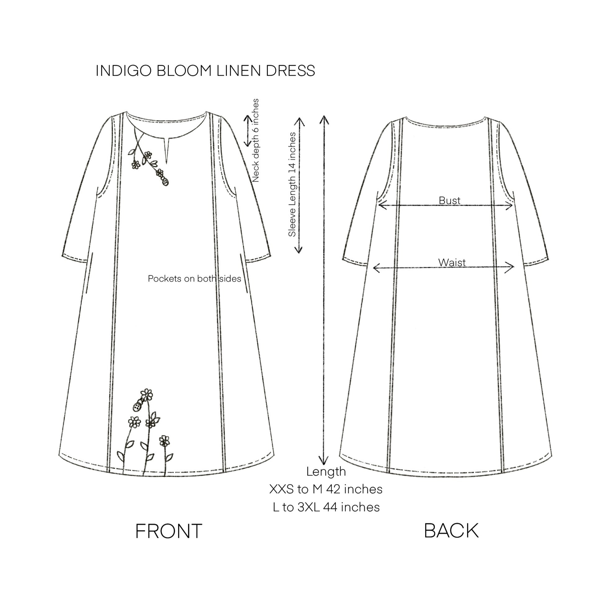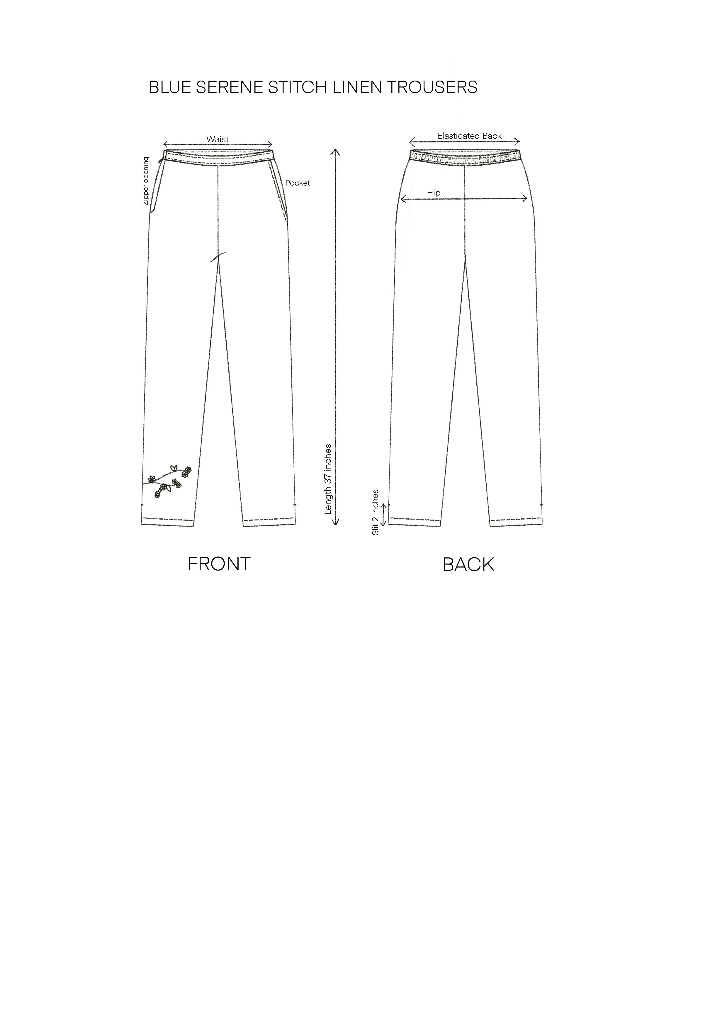 Elevate your wardrobe with the Indigo Bloom Linen Set, featuring the Indigo Bloom Linen Dress and Indigo Serene Stitch Linen Trousers for a coordinated and sophisticated look.