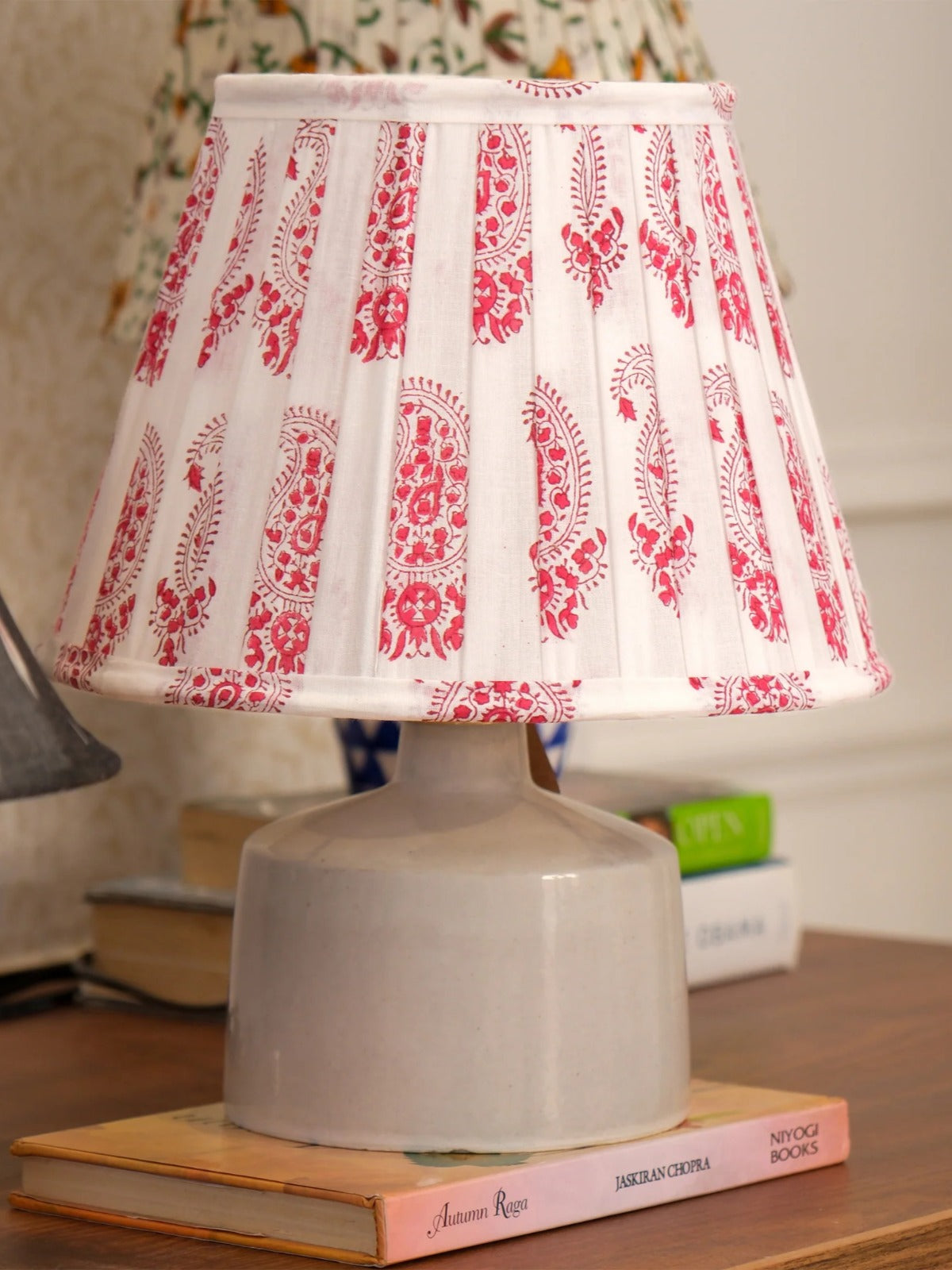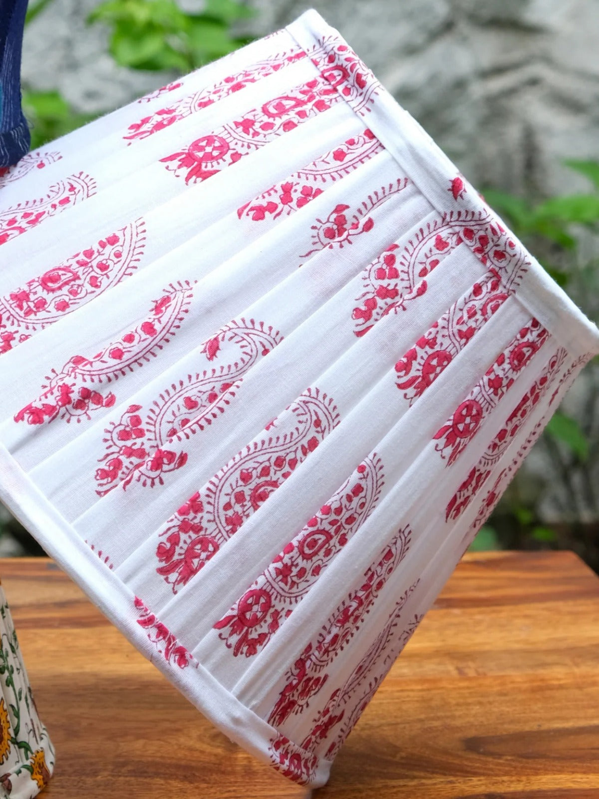 Bring traditional artistry home with this Red Paisley Pleated Empire Lampshade. Hand block printed by skilled artisans of Sanganer, its rich paisley motifs and soft cotton fabric add warmth and character, creating an inviting ambience for any room.