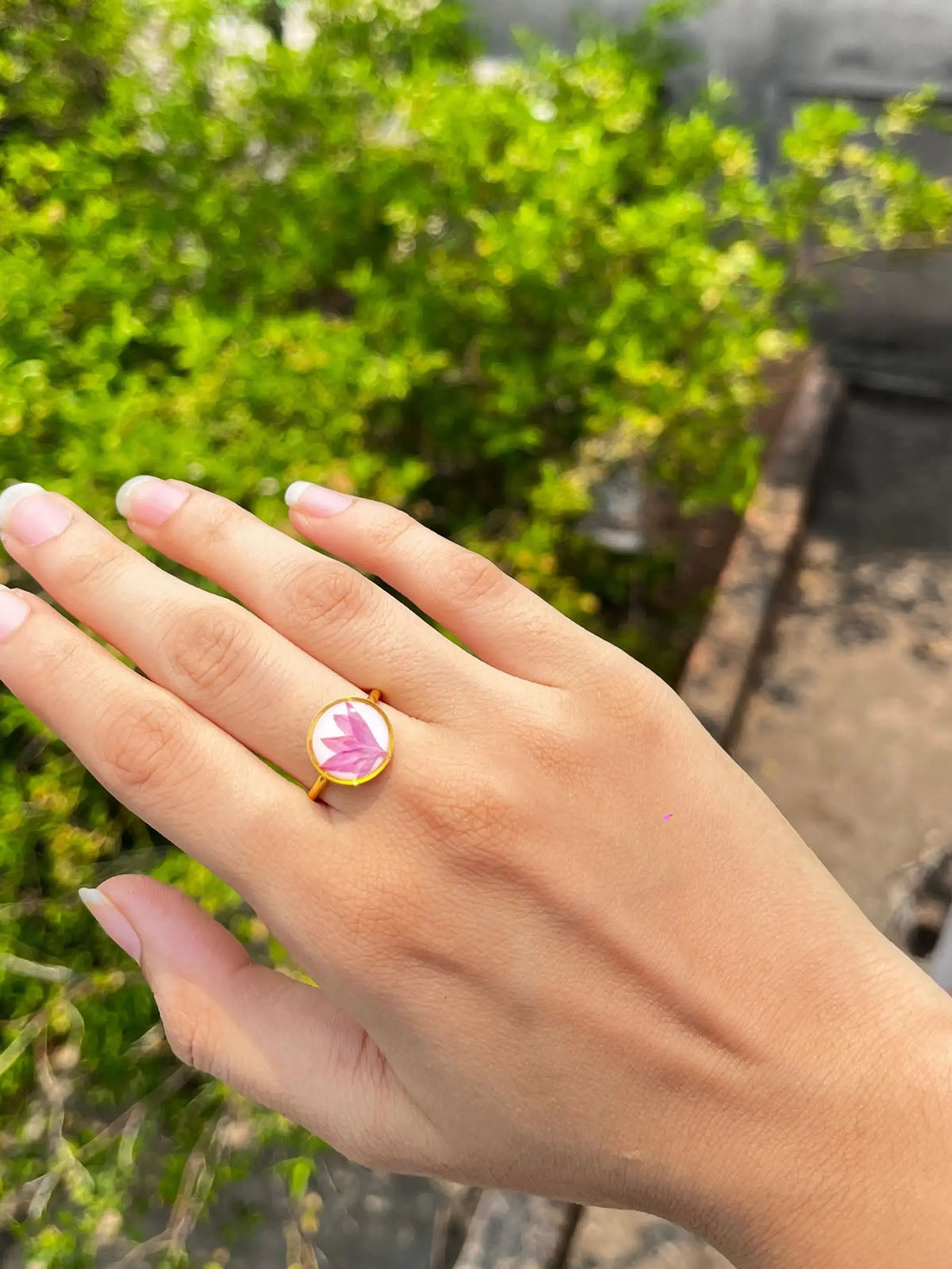 Introducing the exquisite "Cornflower Ring," a timeless piece that captures the rare beauty of pink cornflower petals against a lustrous white base. Each ring is meticulously crafted to showcase the delicate allure of this increasingly scarce flower. With a base diameter of 10 mm and an adjustable fit, it offers both comfort and style. Crafted from anti-tarnish stainless steel, this ring ensures enduring quality and shine. The intricate detailing and vibrant hues make it a statement accessory for any occasion, from casual outings to formal events. Embrace the elegance of nature with this unique ring, perfect for those who appreciate the finer things in life and seek to adorn themselves with a touch of natural splendor. Ideal as a meaningful gift or a special addition to your own collection, the Cornflower Ring is a testament to beauty preserved and celebrated through craftsmanship. Please note:- No two flowers can ever be same, as shown in picture.