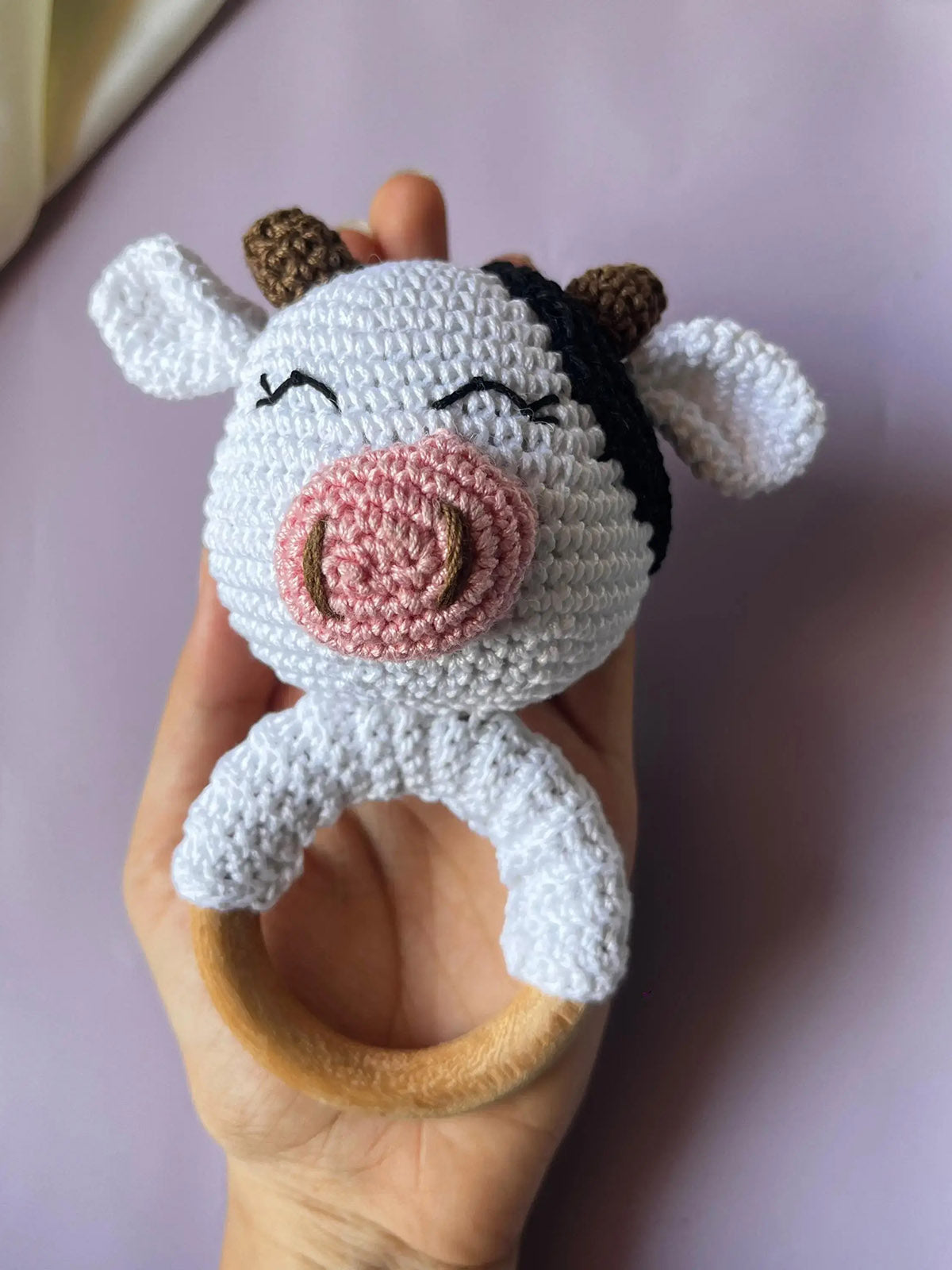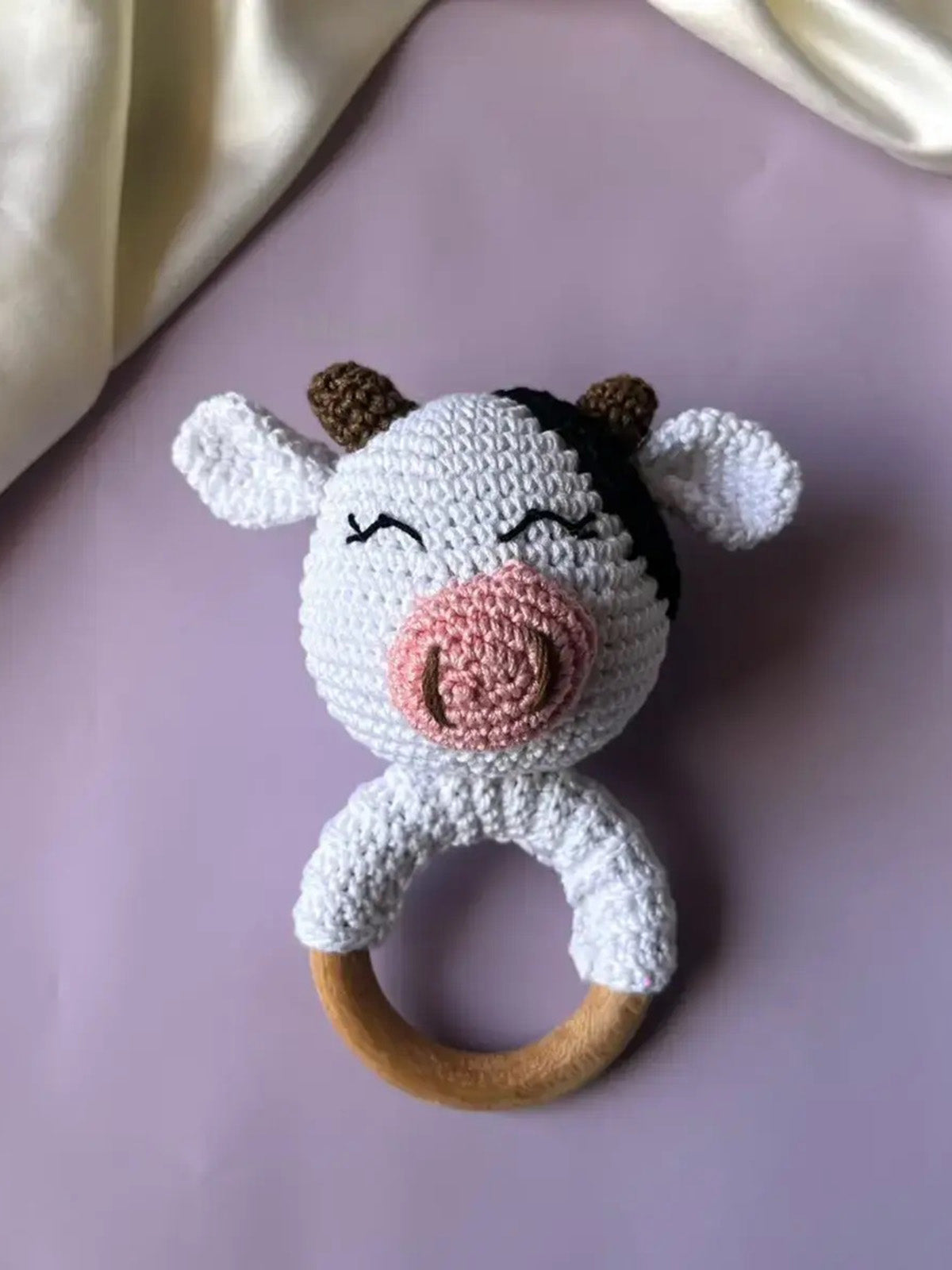 The crochet teether/rattle is an adorable and eco-friendly choice for babies under 2 years old, who often explore the world by putting items in their mouths. Unlike plastic toys, this teether/rattle is 100% safe, made with soft crocheted thread and featuring a wooden ring for easy holding. Measuring around 5 inches, it’s the ideal size for small hands, making it a perfect toy for your little one. This charming toy also includes a sound fitting, like a ghungroo, adding an element of auditory delight. Handcrafted with utmost love and care, it combines sustainability and practicality, being both washable and durable. Its thoughtful design ensures that it is not only a delightful plaything but also a wonderful gift for any baby. Choose this crochet teether/rattle to give a safe, sustainable, and lovingly crafted toy that both parents and babies will appreciate.